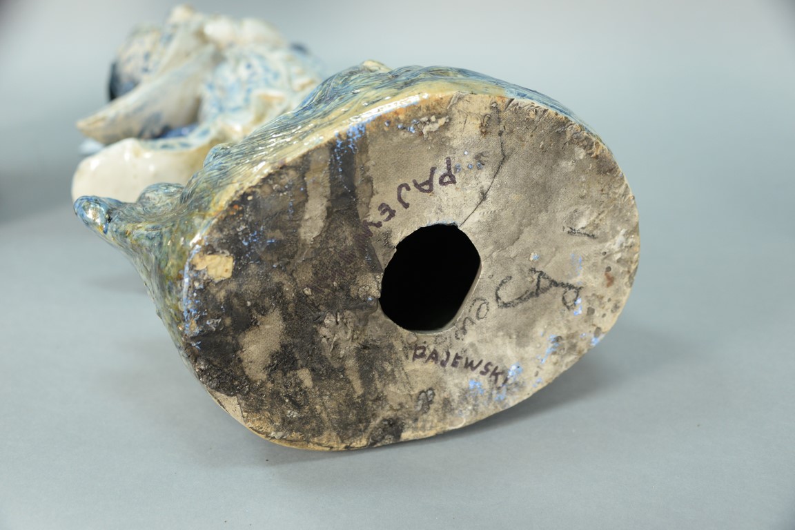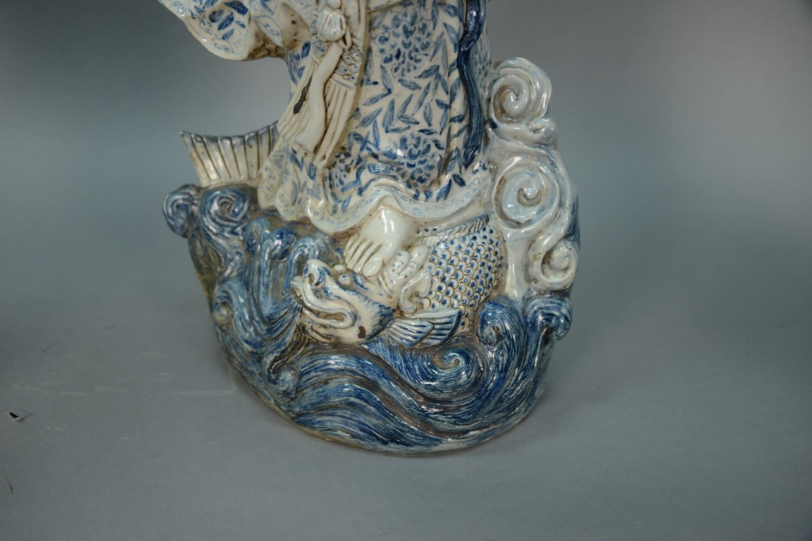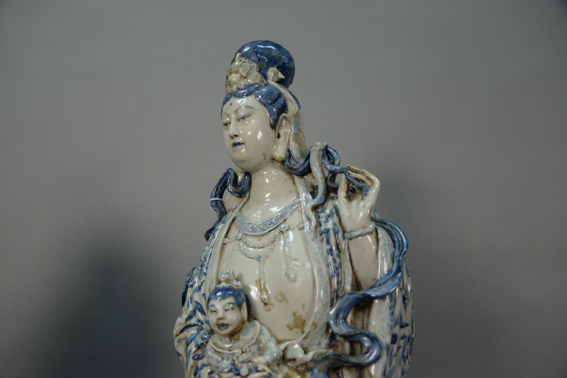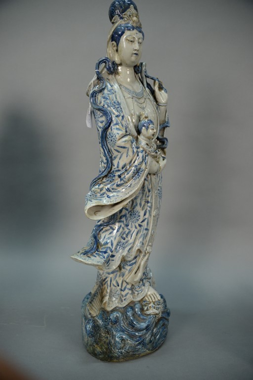Large Chinese blue and white porcelain figure of a goddess holding a boy. height 32 inches