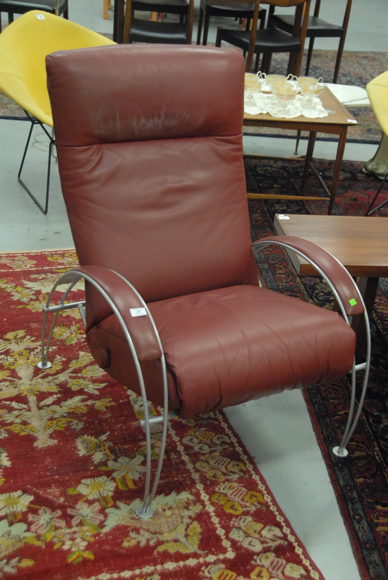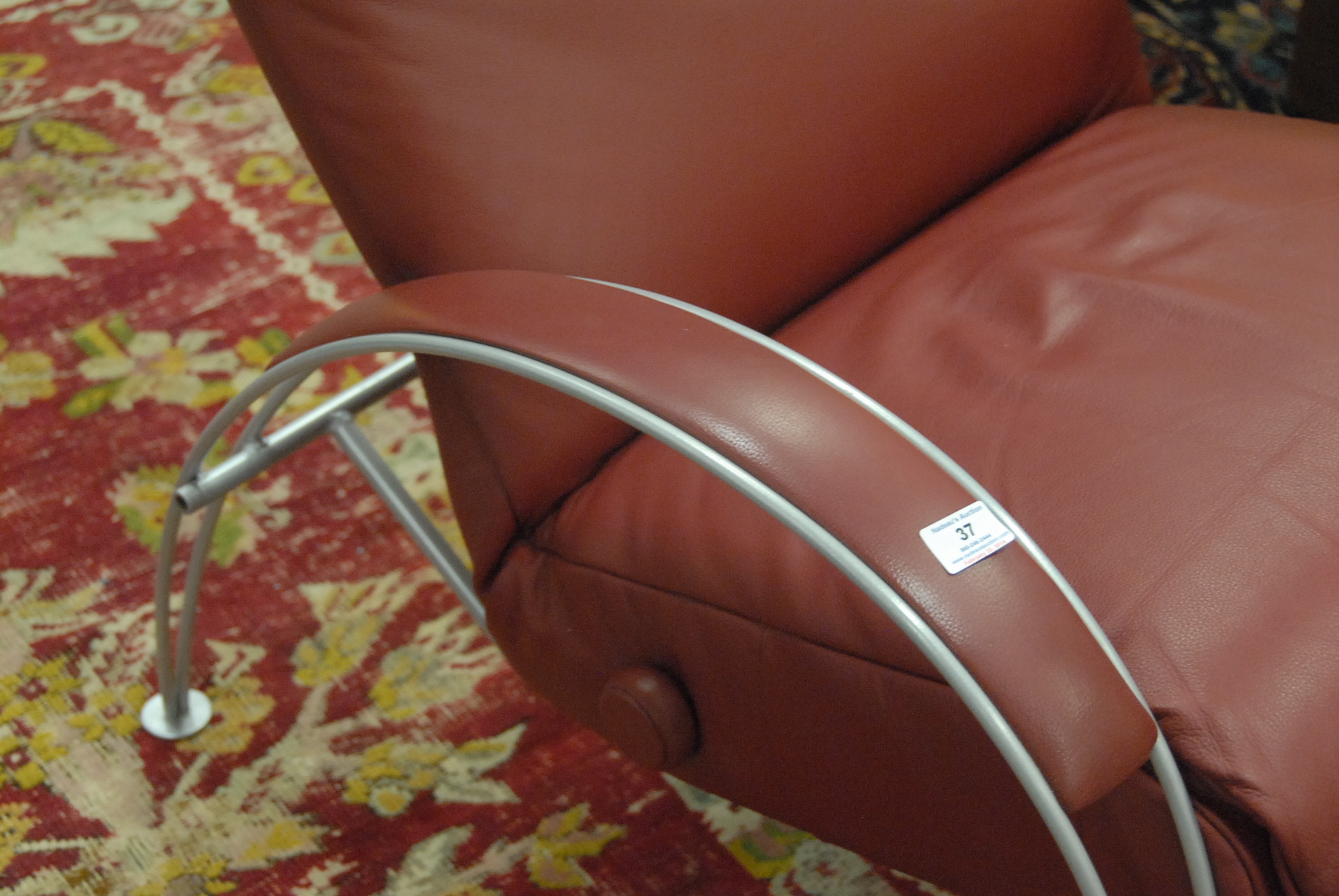 Lot 37: Modern leather lounge chair in very good condition. Seat ht. 18in. overall ht. 40in. wd. 29in. dp. 35in.