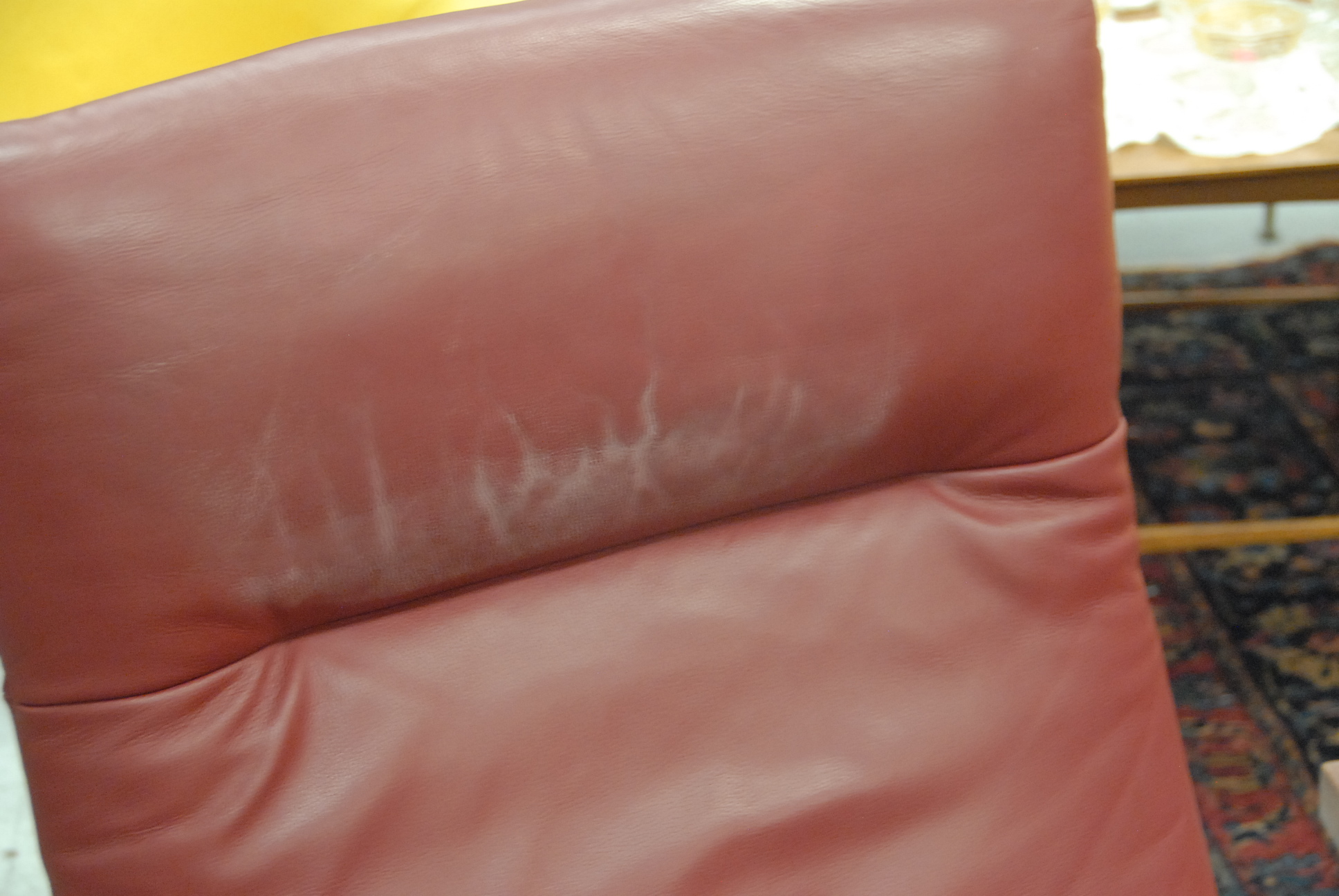 Modern leather lounge chair in very good condition. Seat ht. 18in. overall ht. 40in. wd. 29in. dp. 35in.