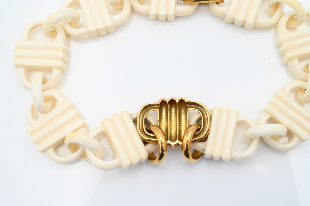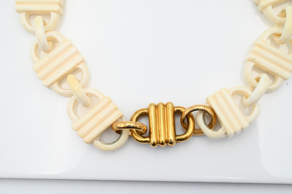 Lot 37: Vintage Tambetti 18 Karat Gold and Ivory Necklace, 1970’s, having 18 karat gold center and clasp marked Tambetti, center approximate…