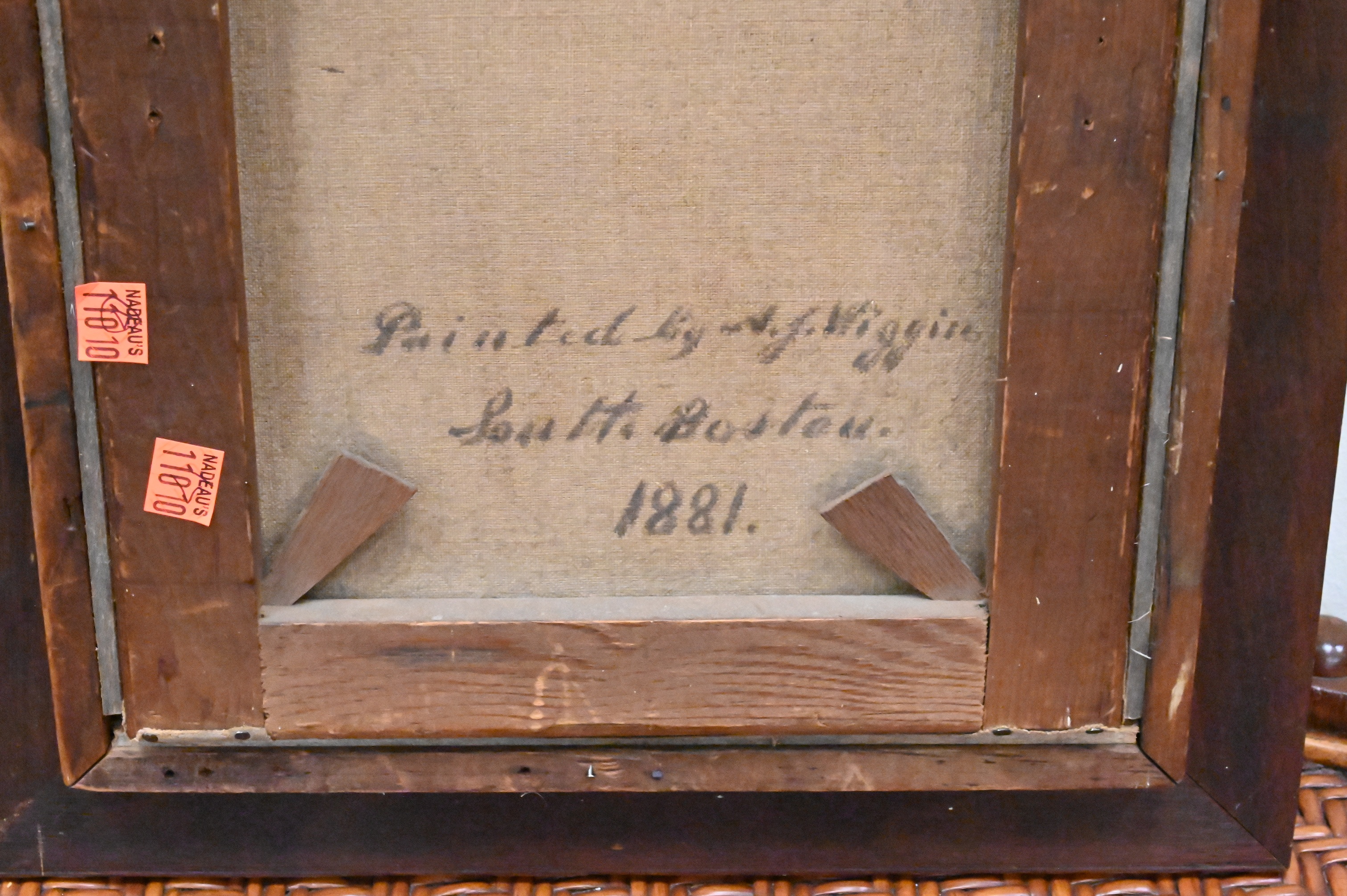 Signed and inscribed on verso “Painted by A.J. Wiggin, South Boston, 1881.”