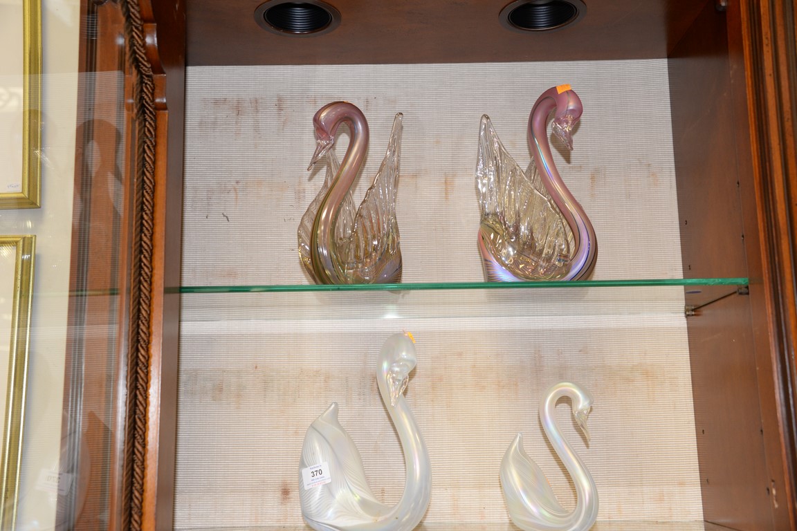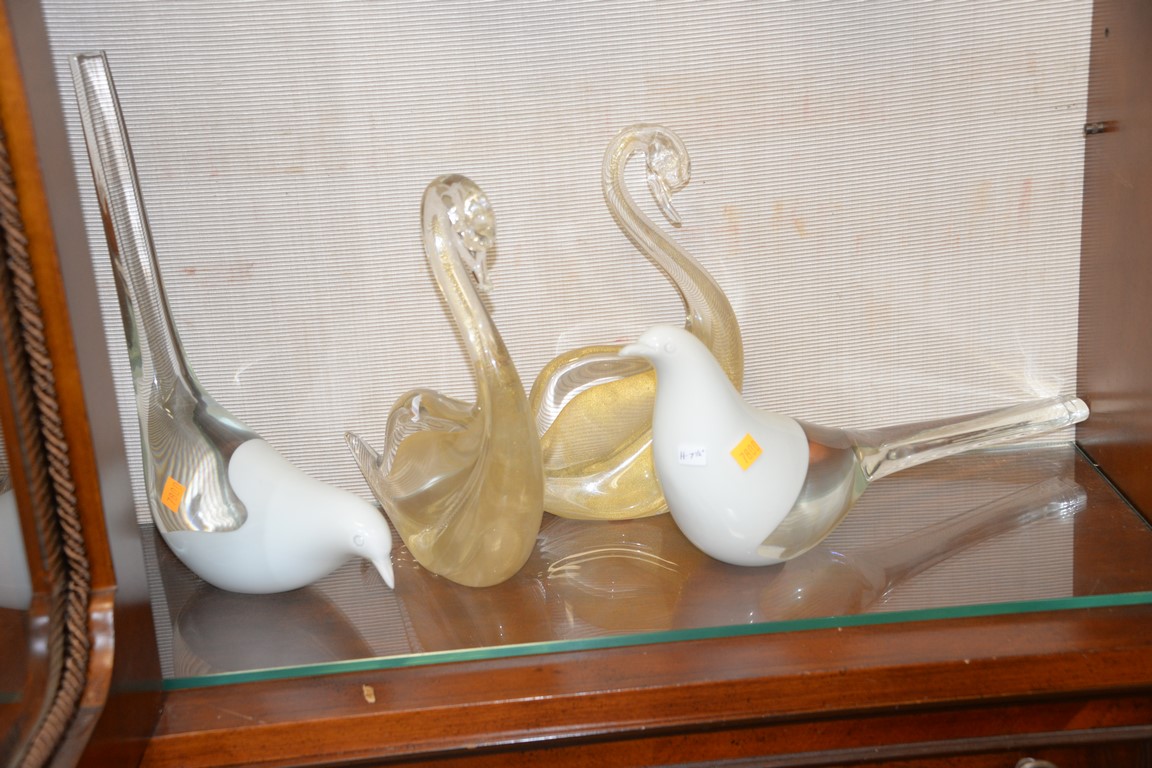Lot 370: Eight Murano birds to include two pairs of swans signed on bottom, pair of swans marked Nason Italy, and pair of white and clear gla…