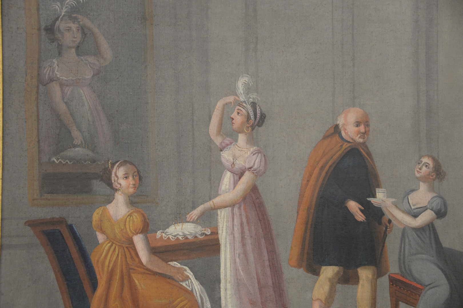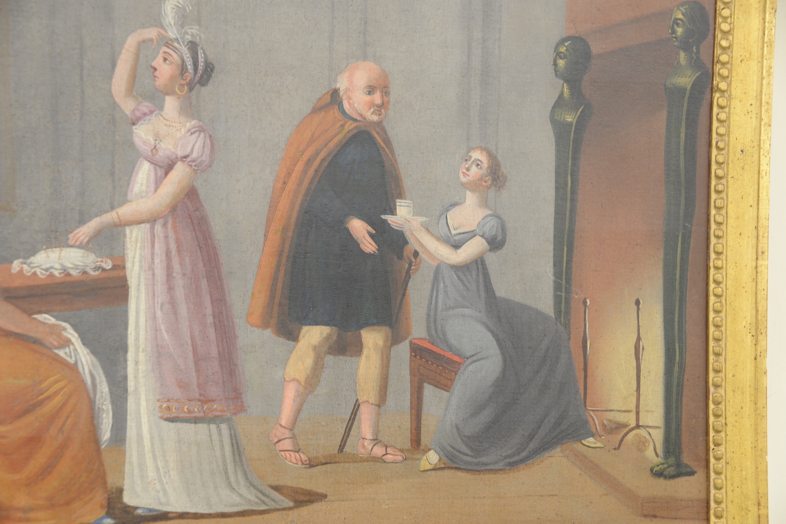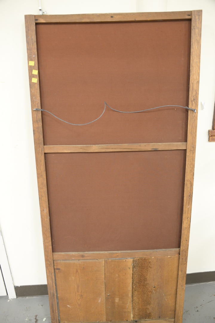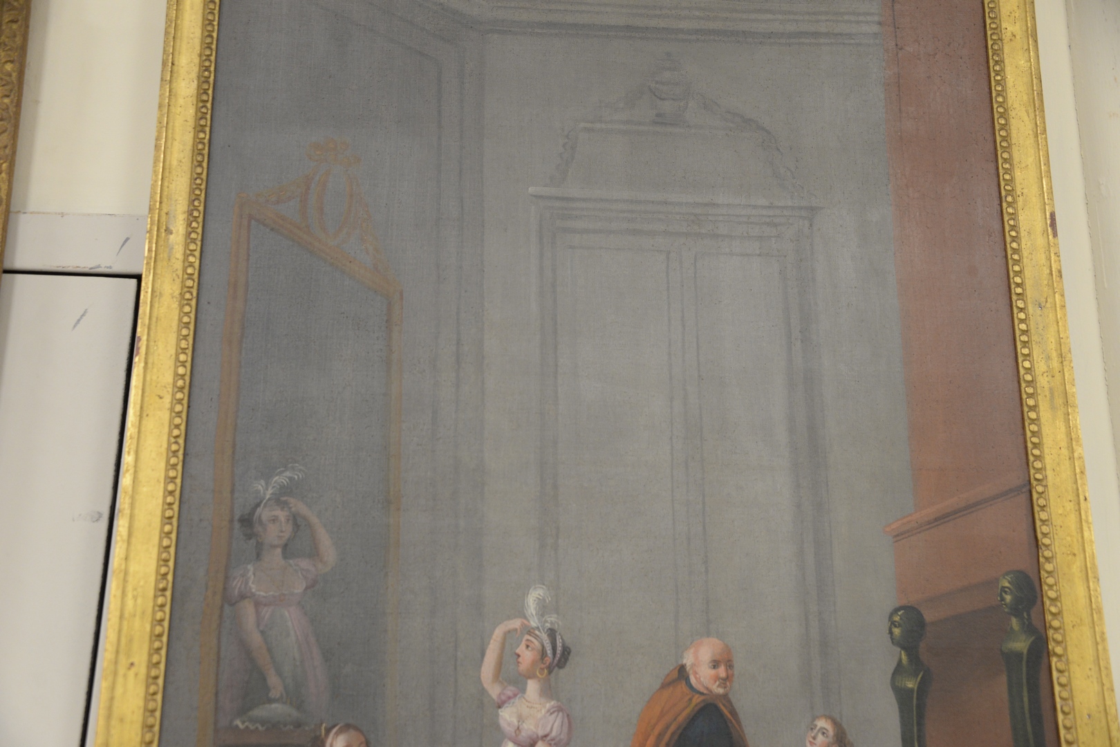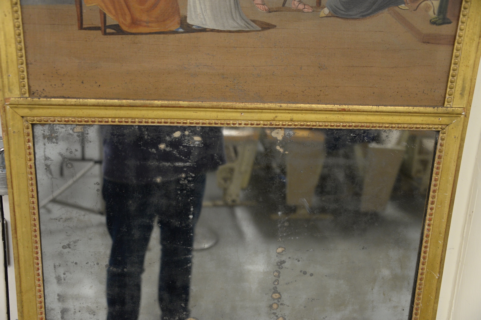 Lot 370: French Trumeau Mirror oil on canvas having large painted interior scene with figures 19th century 62 1/2 x 28 1/2
