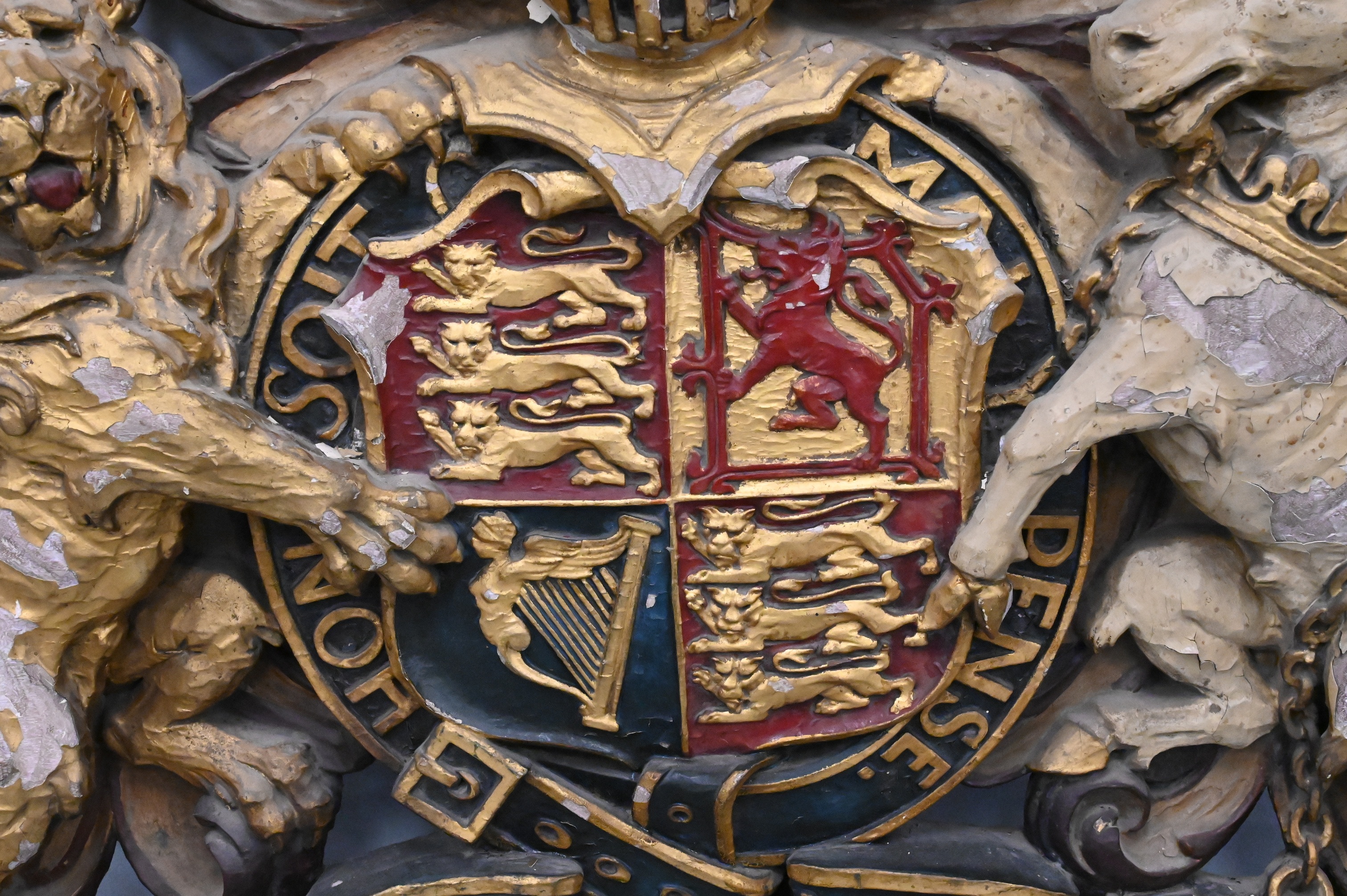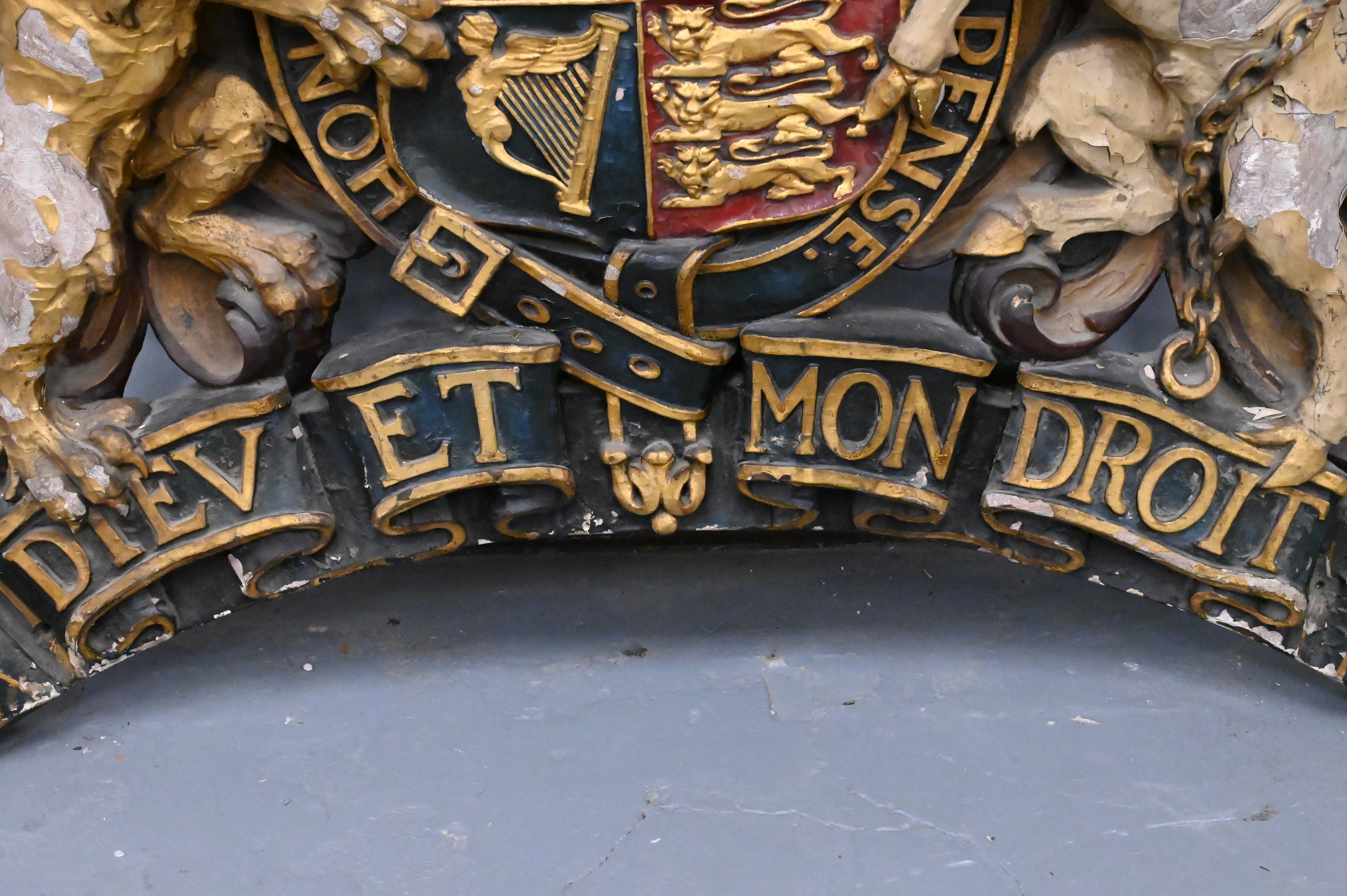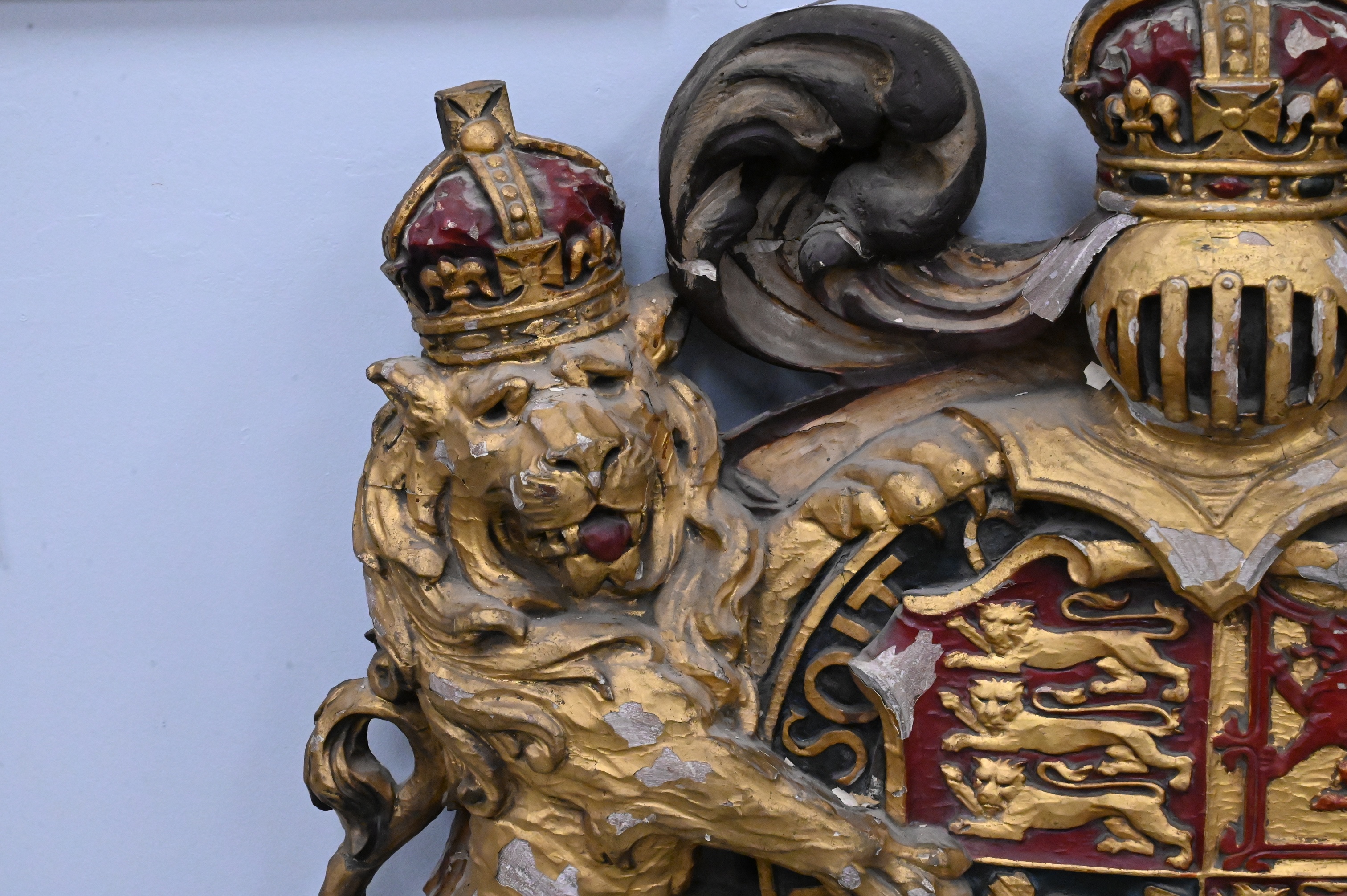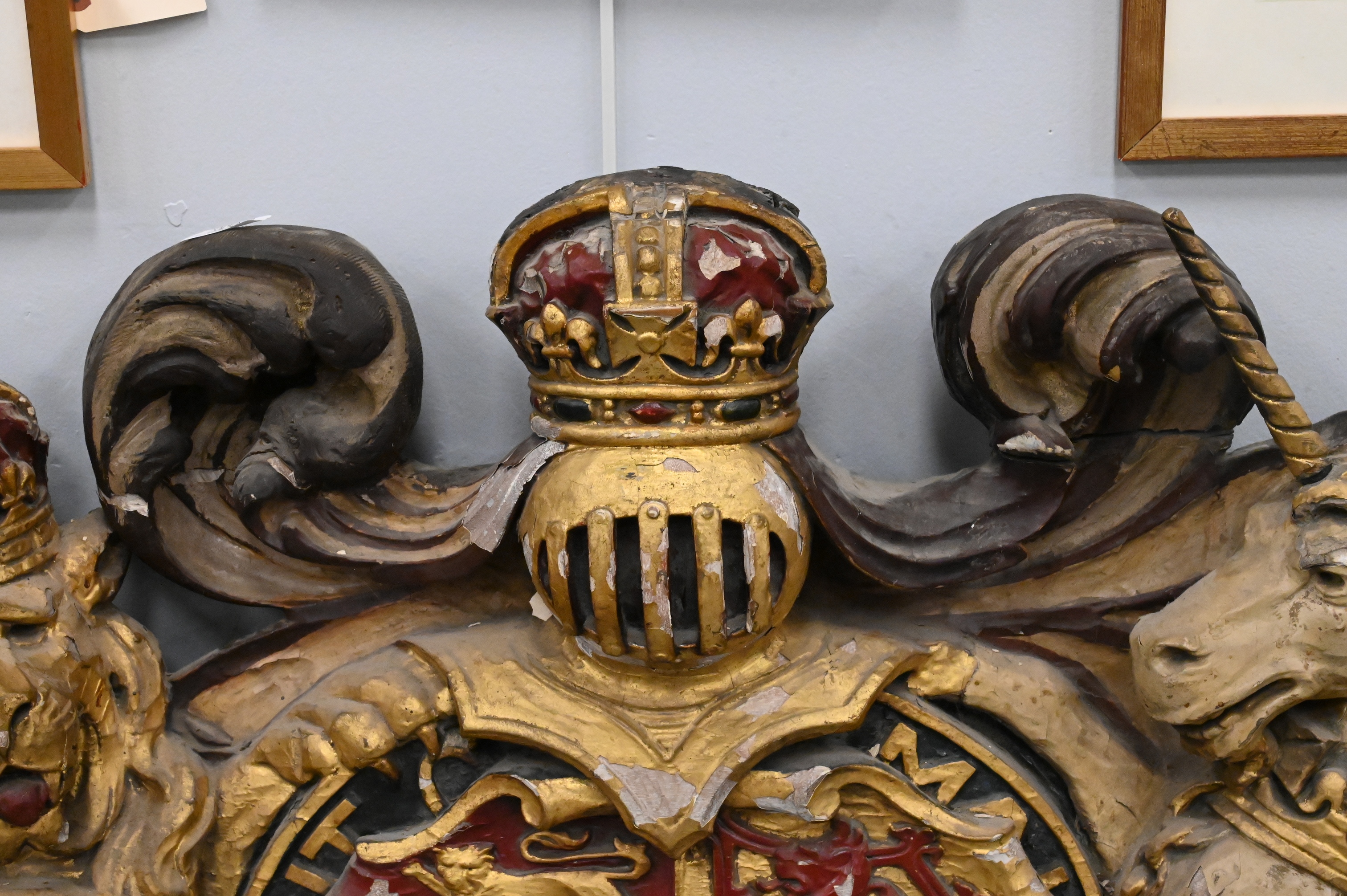 Lot 370: Large Carved and Polychrome Royal Coat of Arms of the United Kingdom