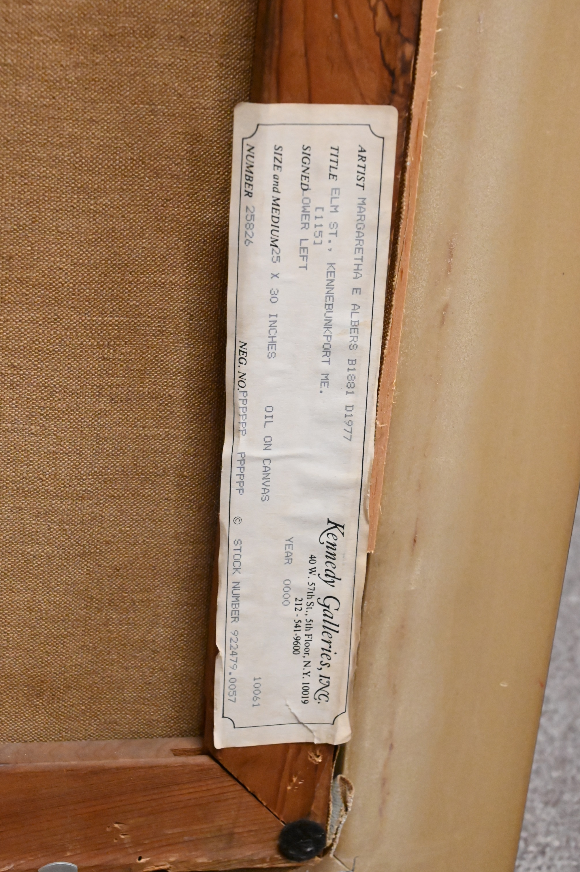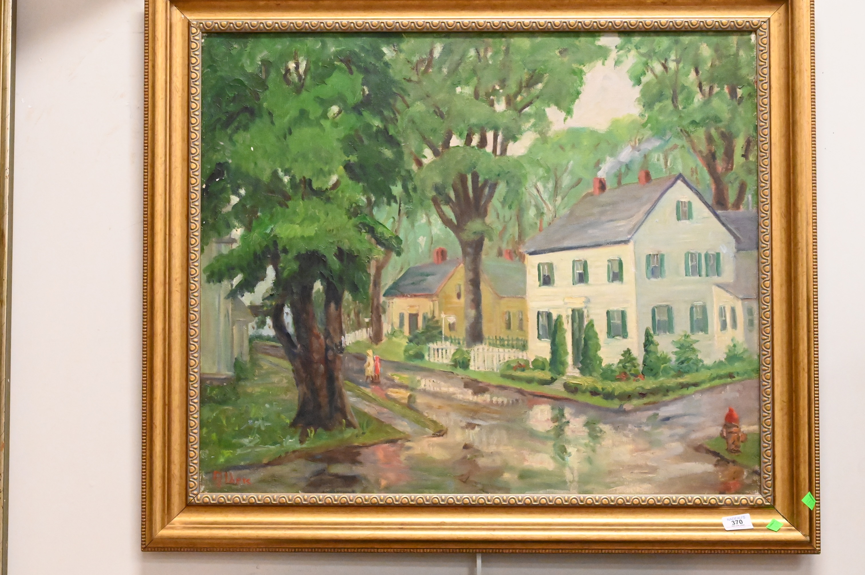 Margaretha E Albers (American 1881-1977) “Elm St Kennebunkport Me.” oil on canvas signed lower left “Albers” Kenney Galleries N.Y. label on verso 25″ x 30″