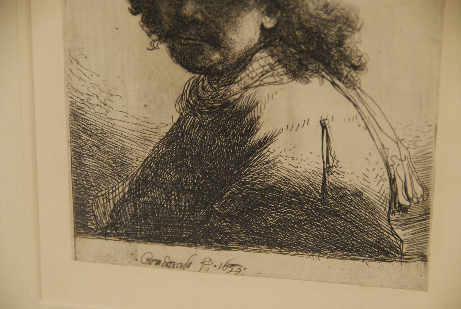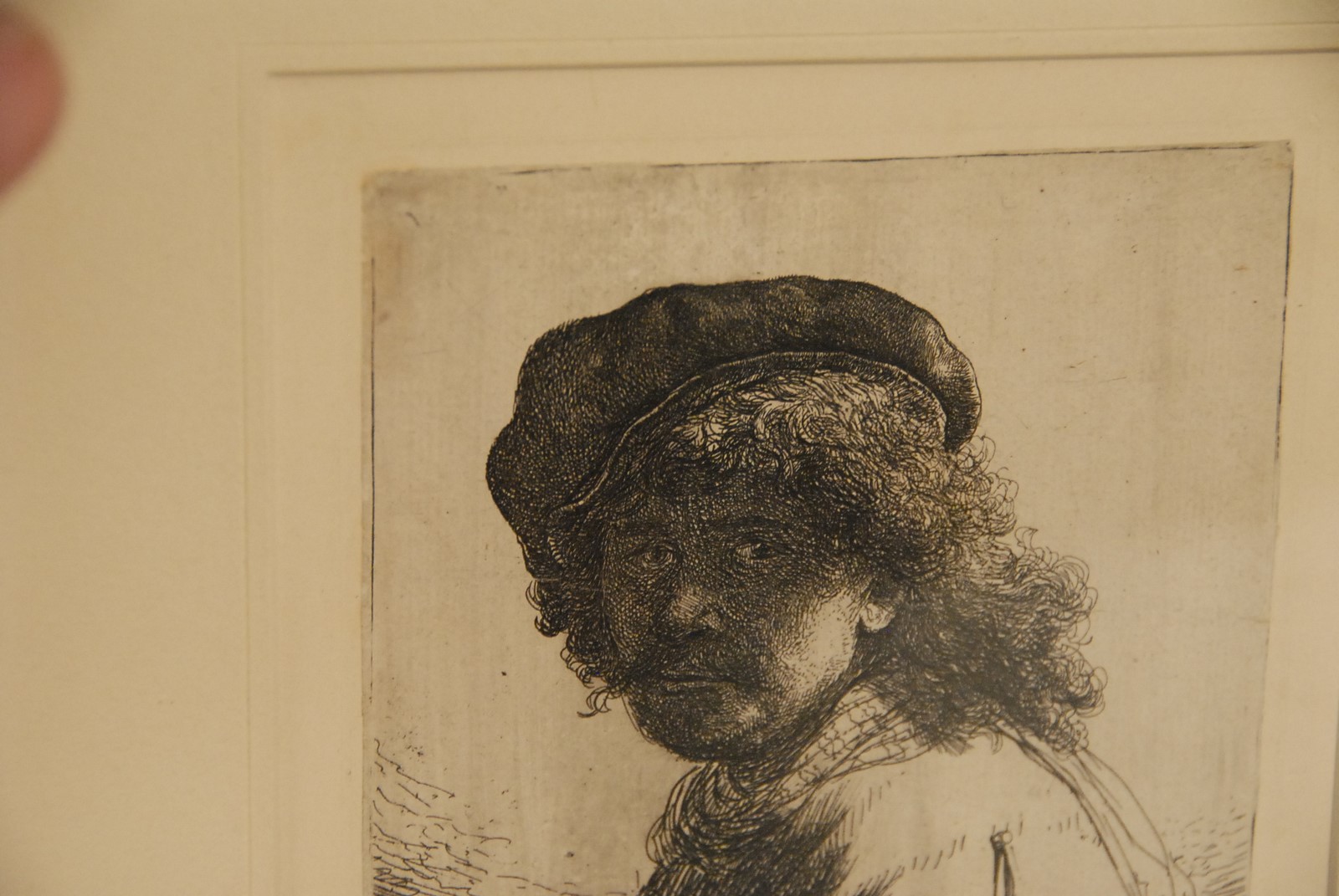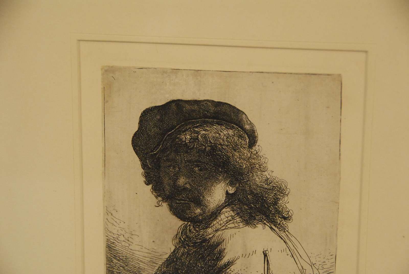 Rembrandt Van Rijn 1606-1667 SELF PORTRAIT in cape and scarf ETCHING 5 1/8 X 4 3/16