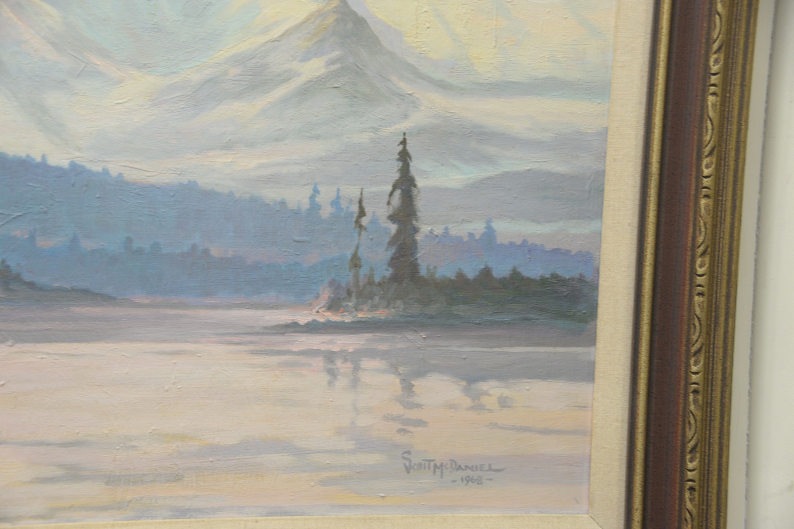 Scott McDaniel American, 1926 – 2012, Camping on the River, 1968, oil on Masonite, signed and dated lower right: Scott McDaniel, 1968, 30 x 24.