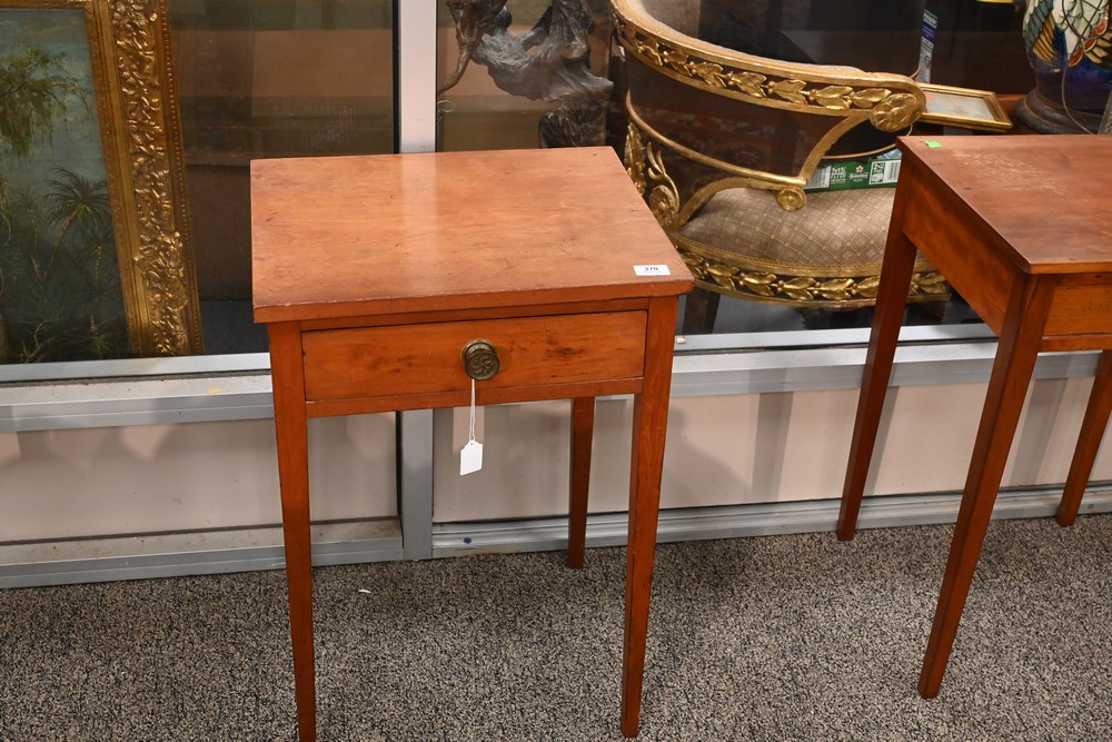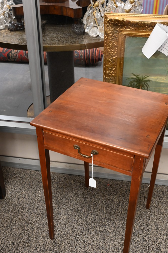 Lot 370: Three Federal One Drawer Stands all on square tapered legs 18th century height of all 27 1/2 inches Provenance: Fifty Year Personal Collection of Clocks and American Antiques from Thomas Bailey, Manchester, Connecticut.