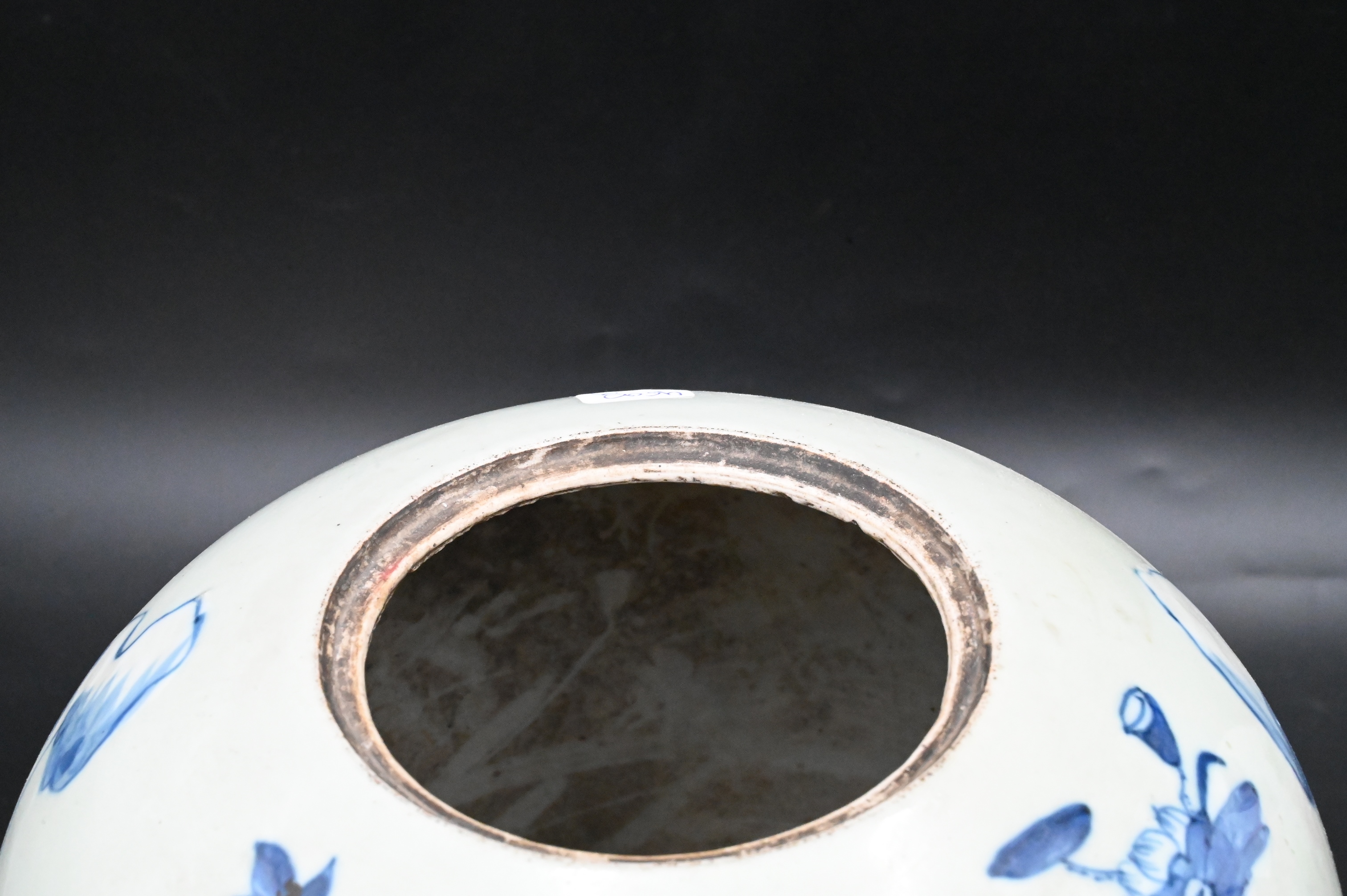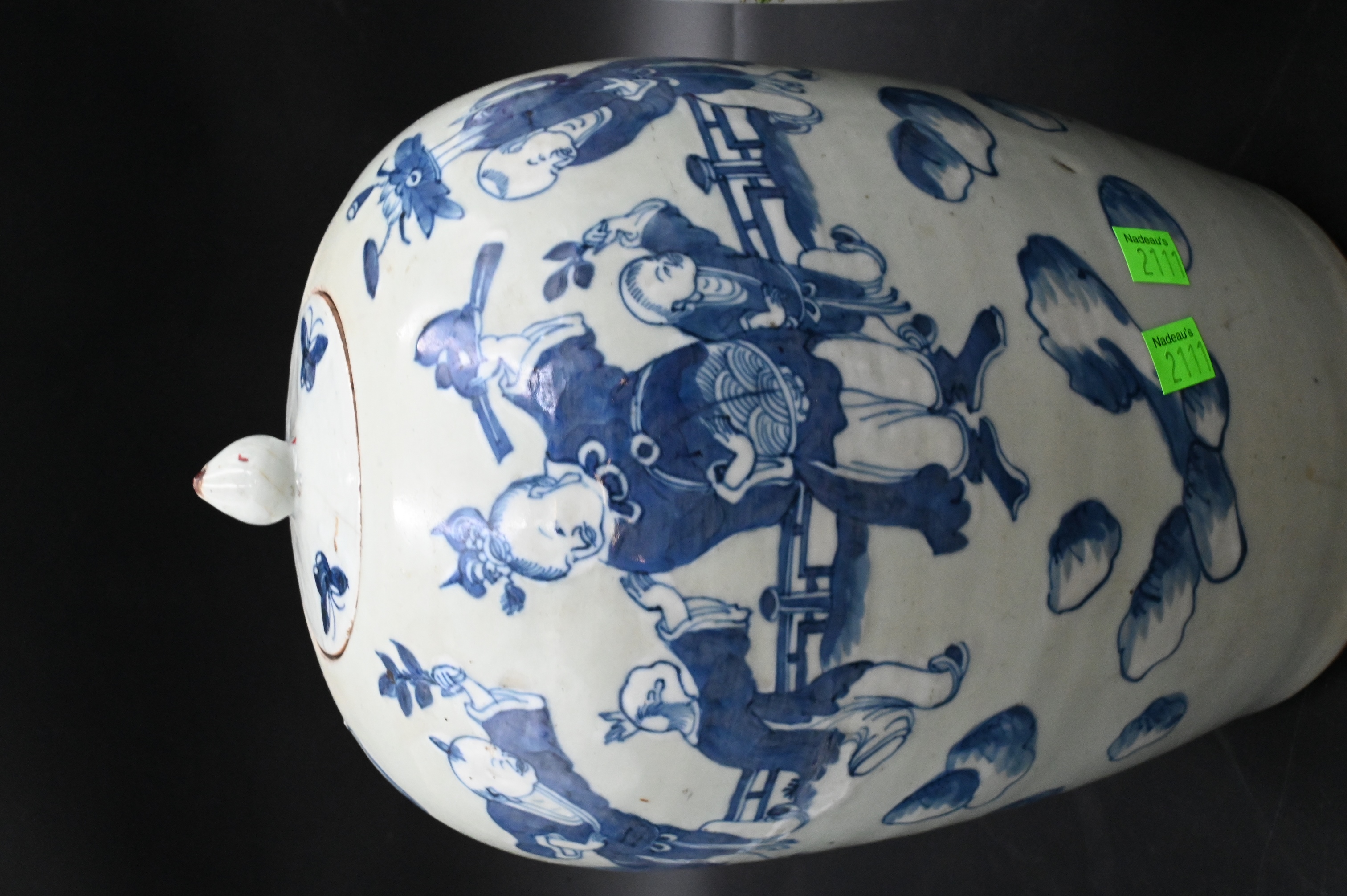 Two Chinese Blue and White Porcelain Jars, with one having painted peony motif, height 14 inches and 13 inches