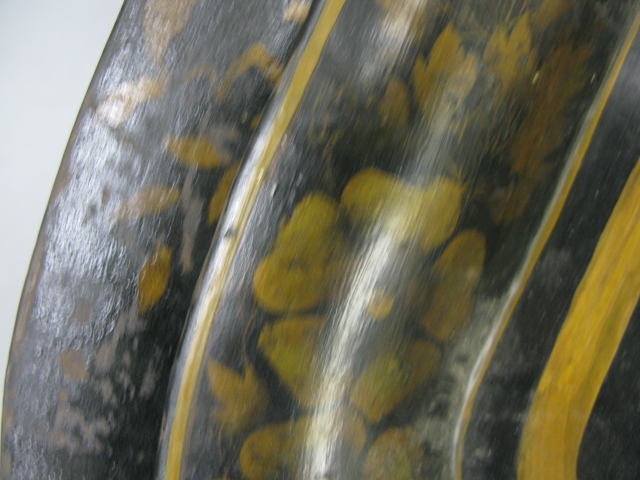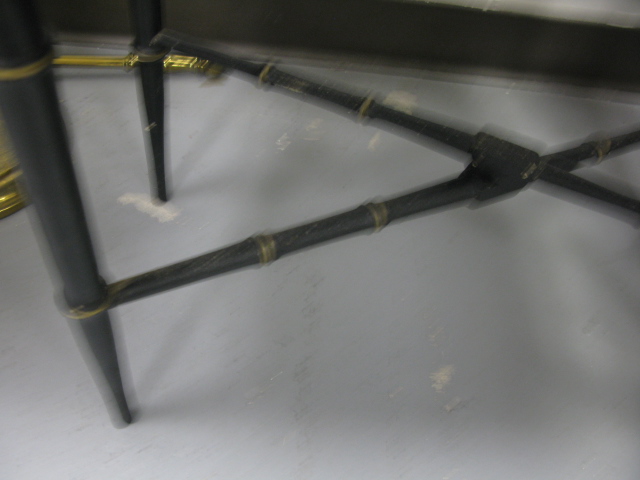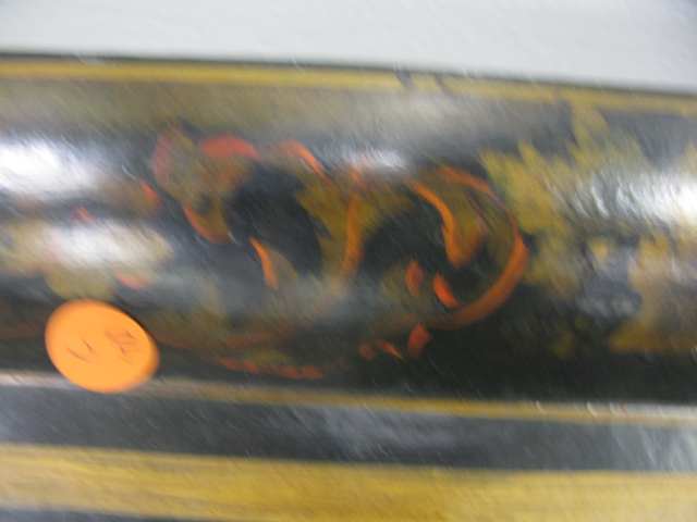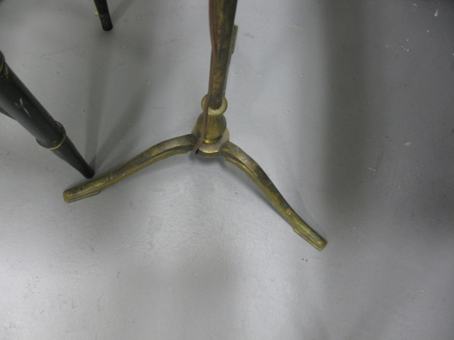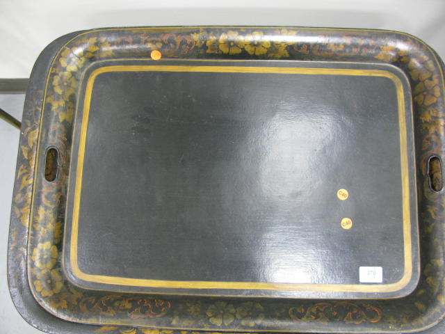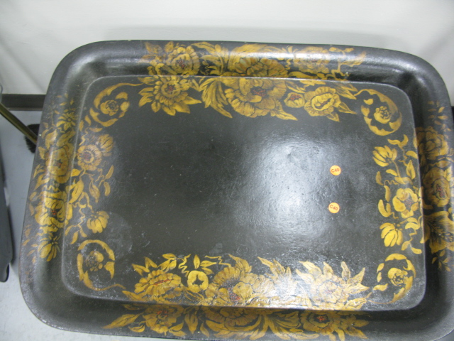 Two tool trays, fireplace tool set holder and brass lamp.