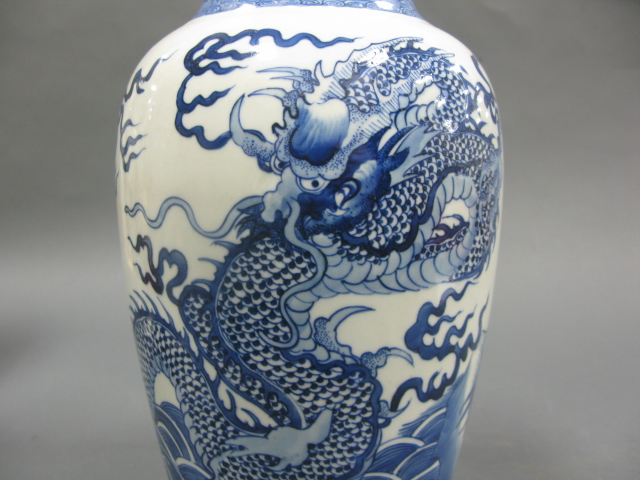 Lot 371: Blue and white four claw dragon vase with two