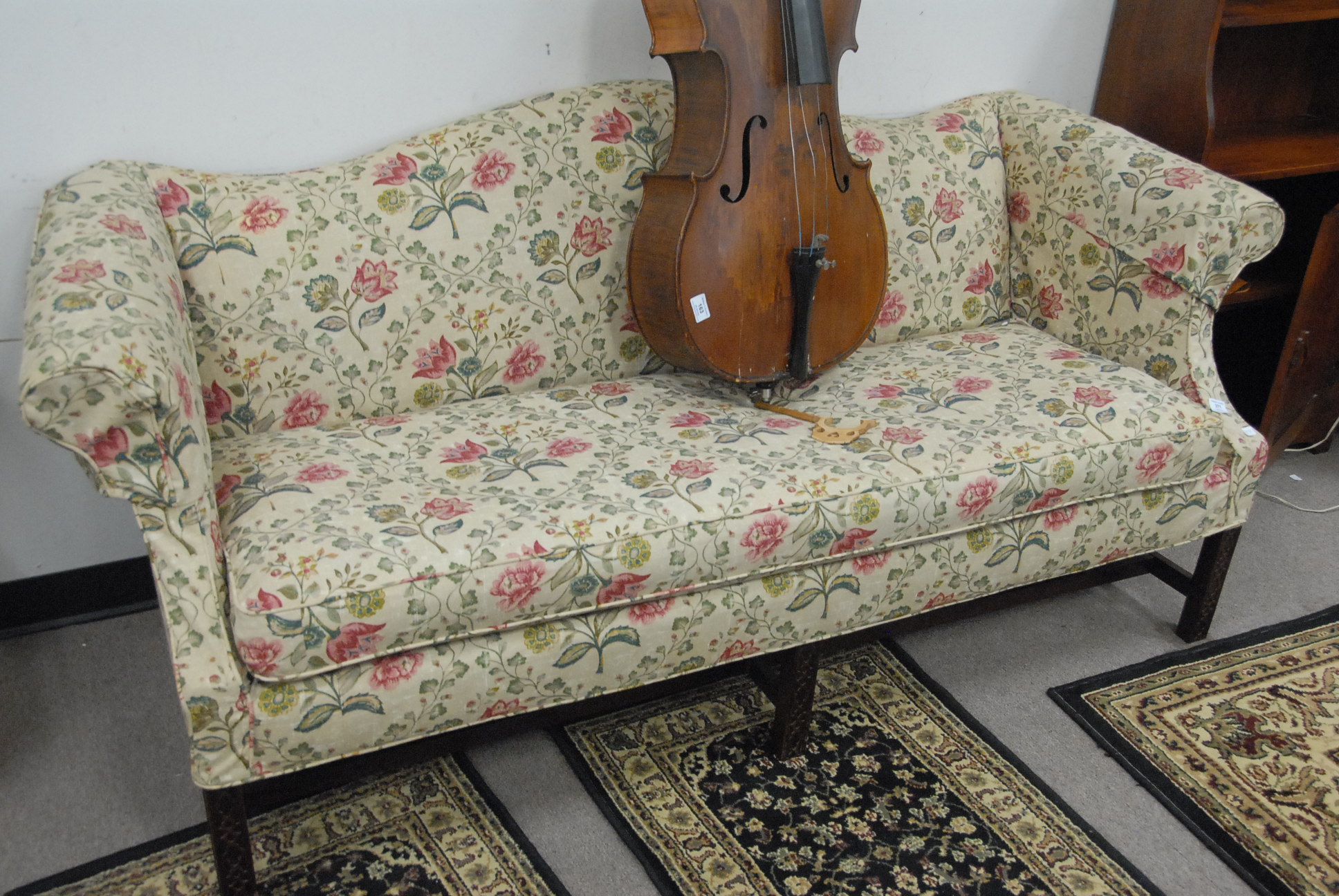 Custom mahogany Chippendale style sofa, lg. 76in.