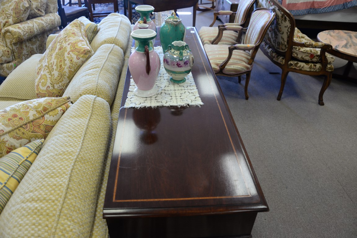 Mahogany hall table with three drawers. ht. 32in., top: 11 x 61