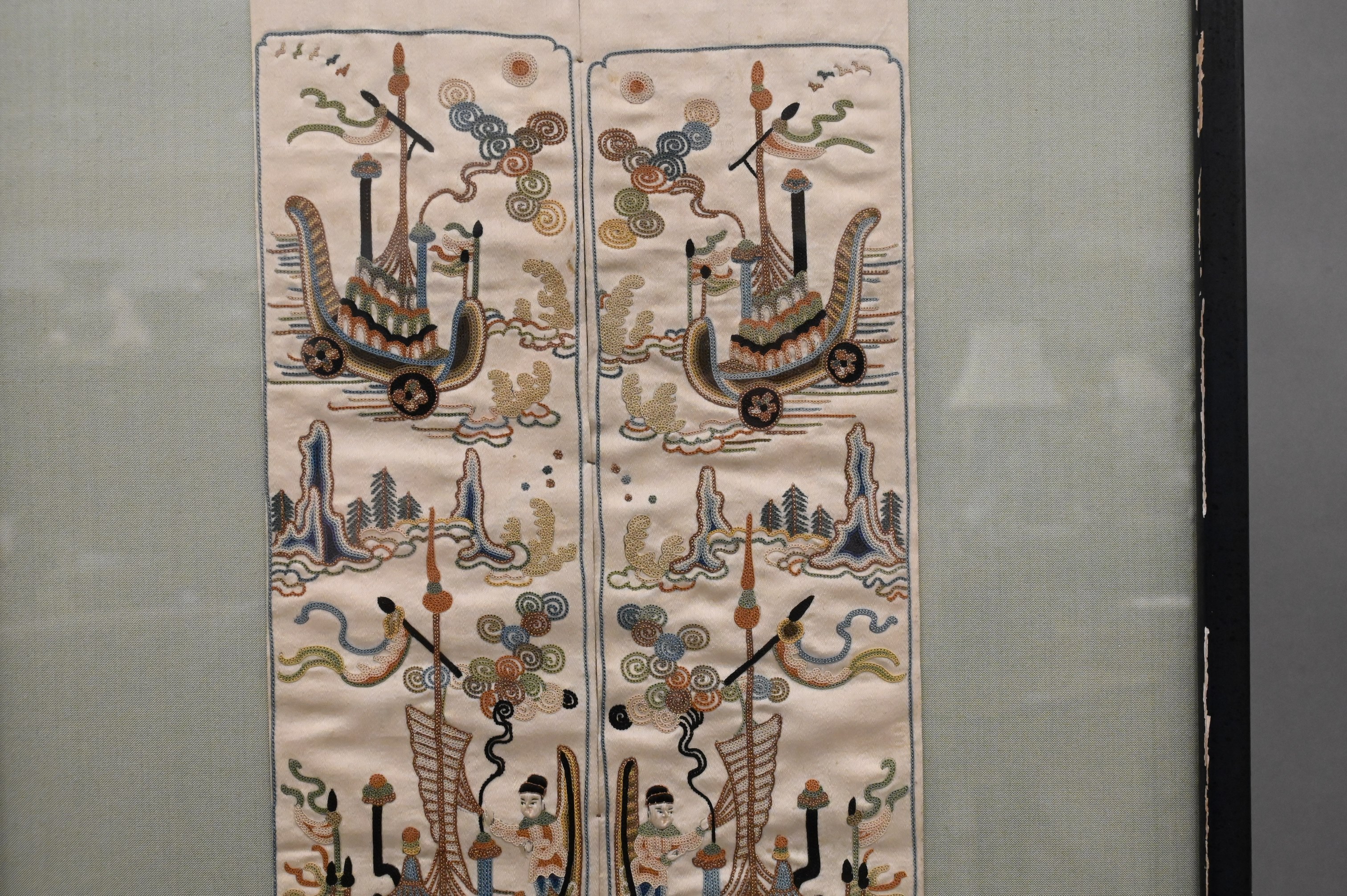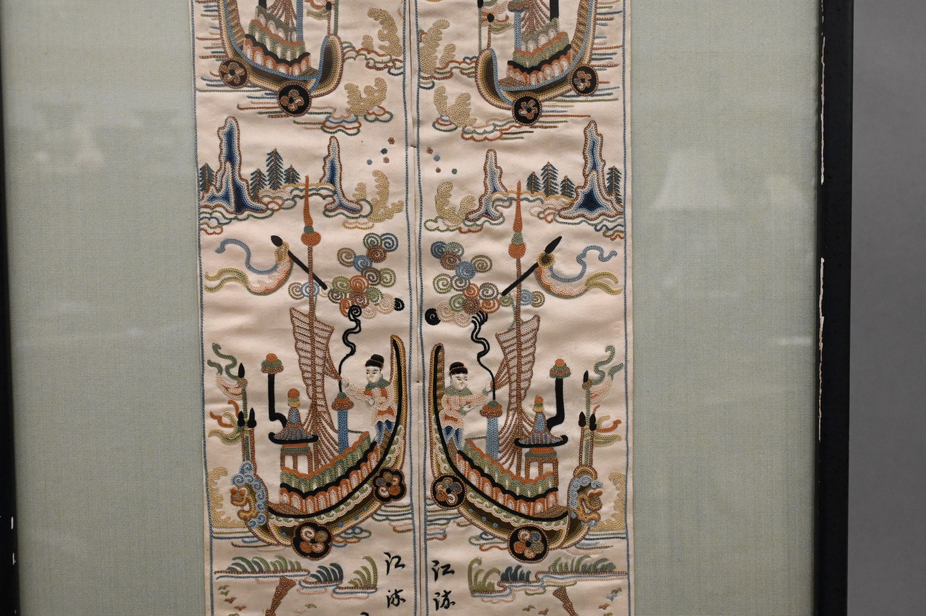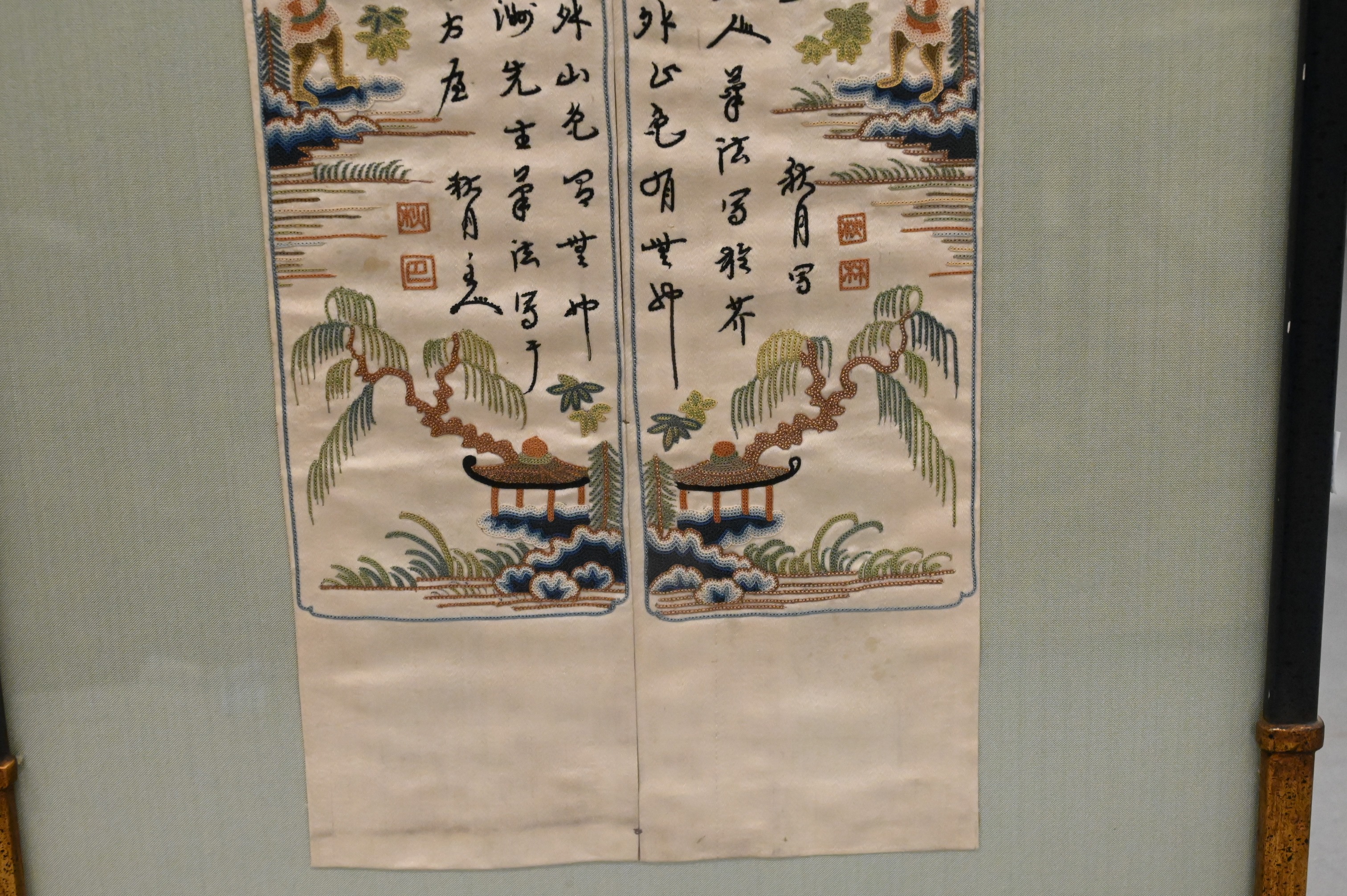 Lot 371: Pair of Framed Chinese Silk Embroidered Sleeve Bands