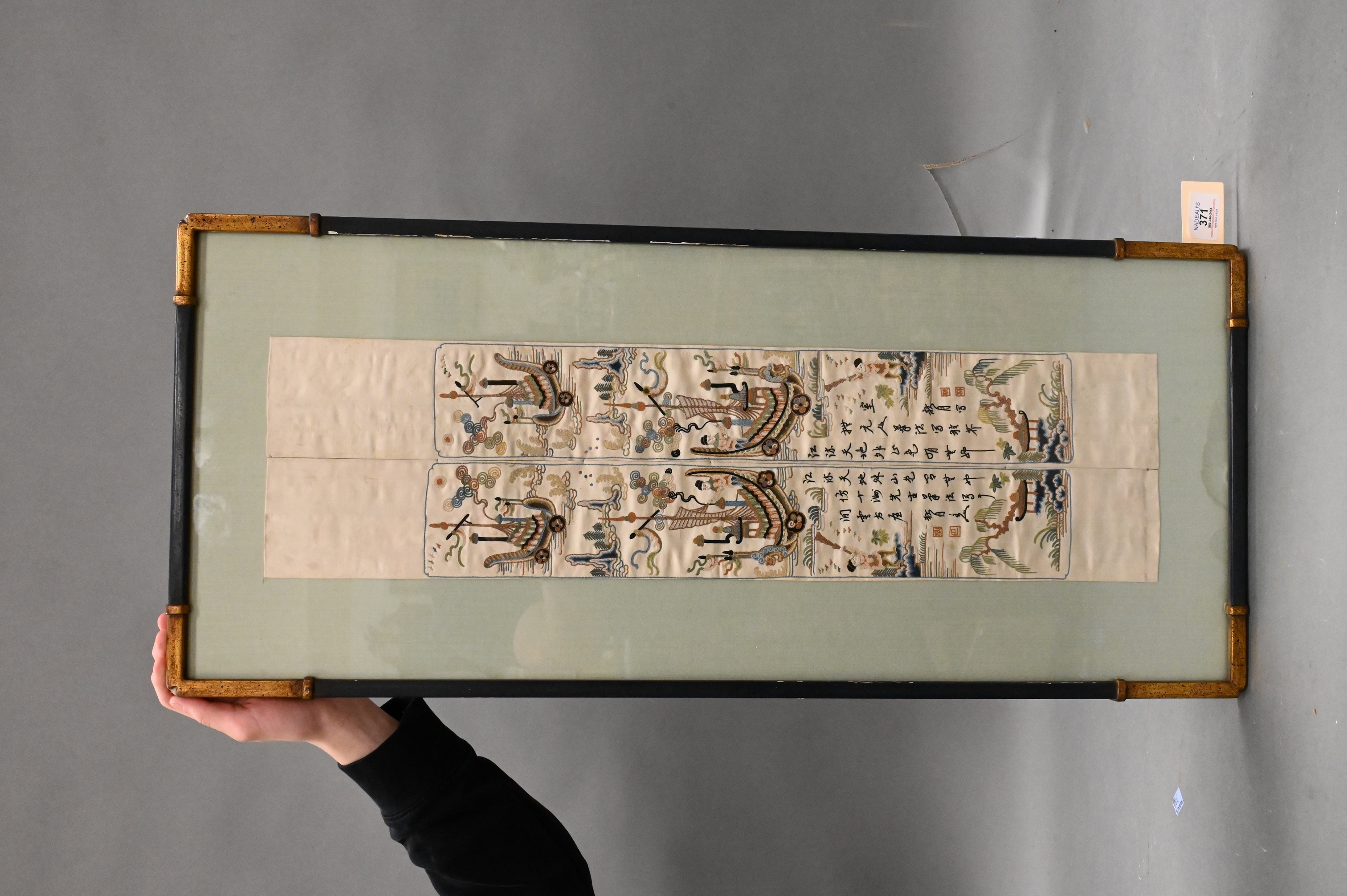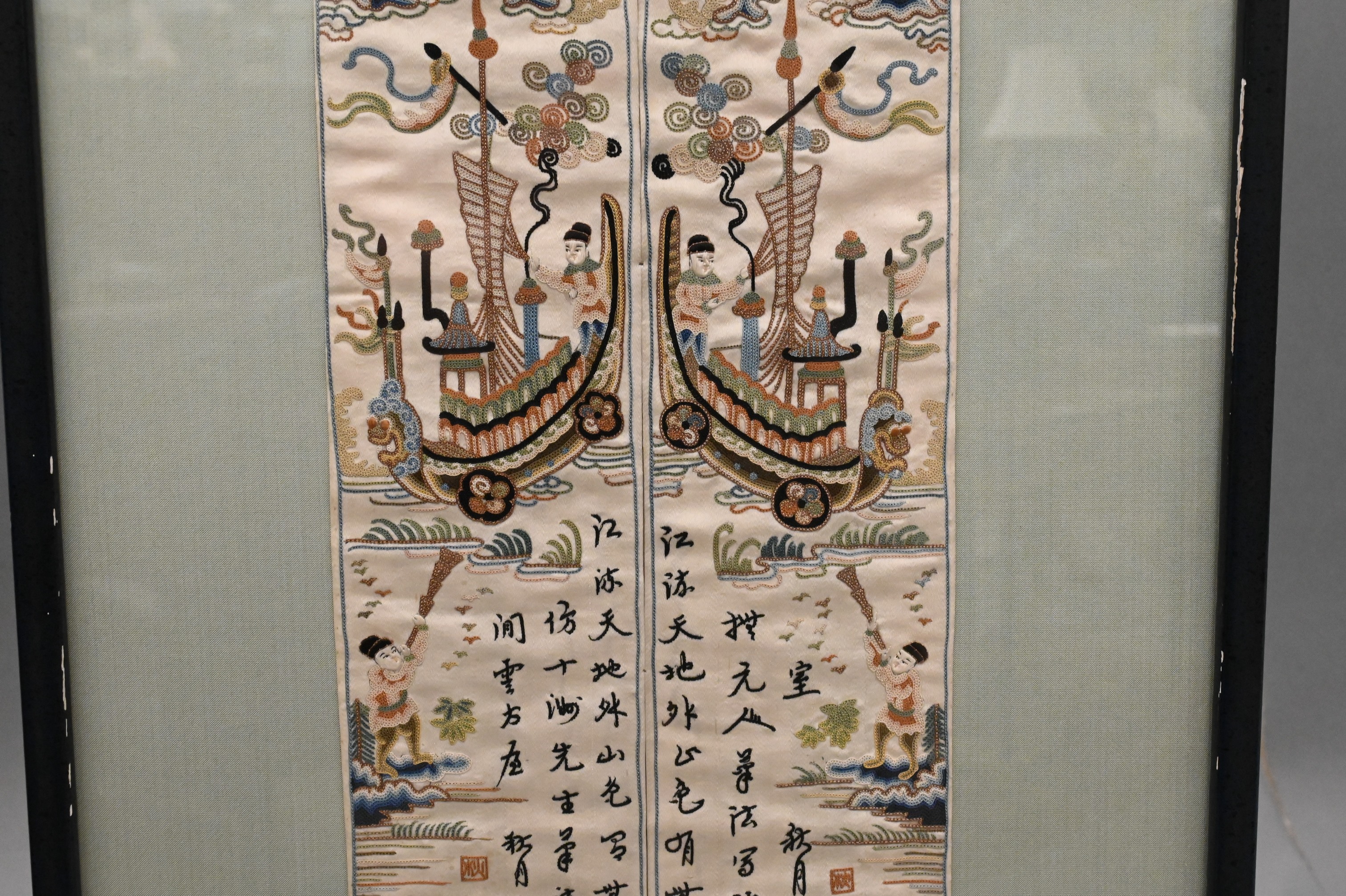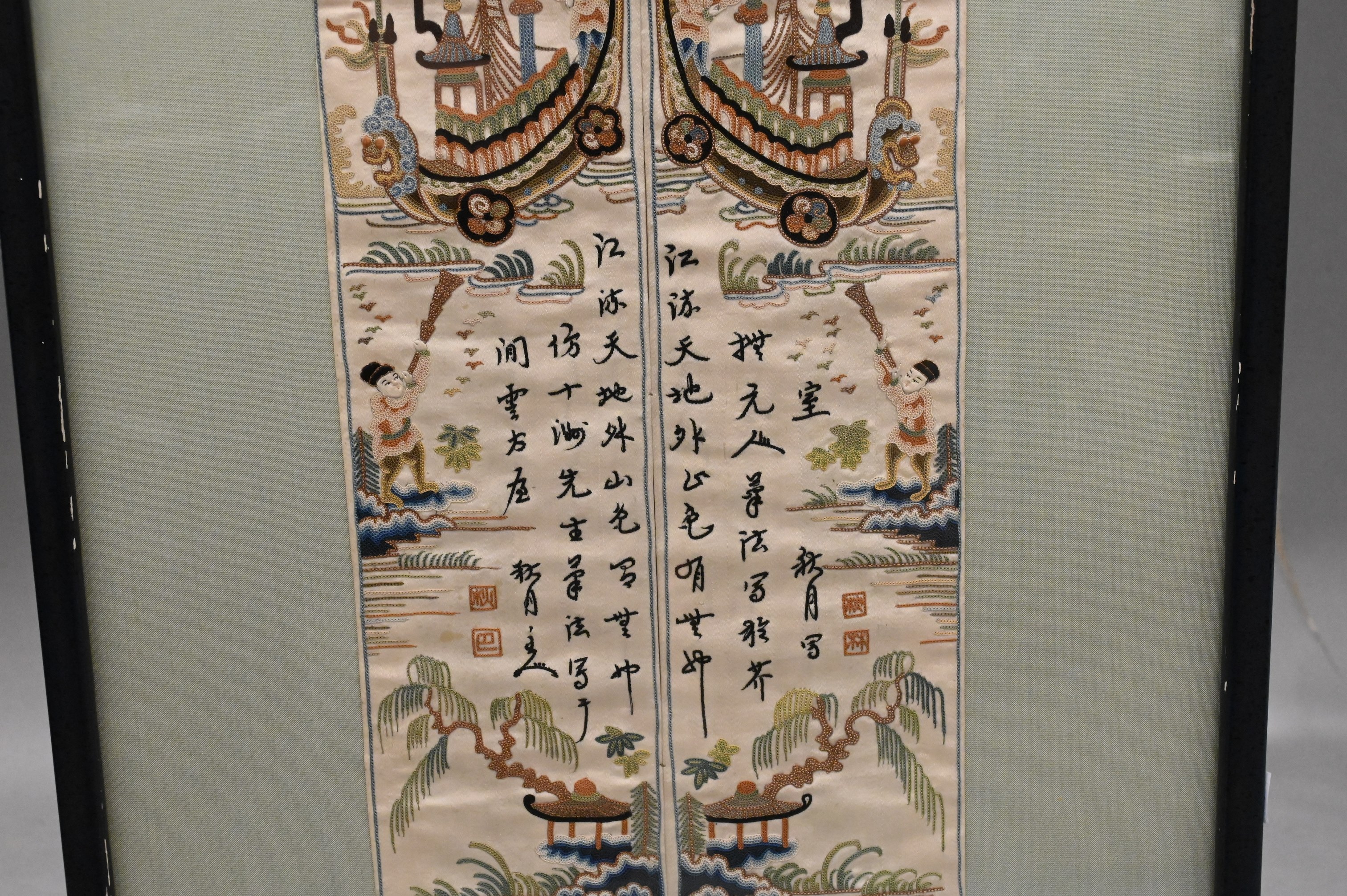 Lot 371: Pair of Framed Chinese Silk Embroidered Sleeve Bands