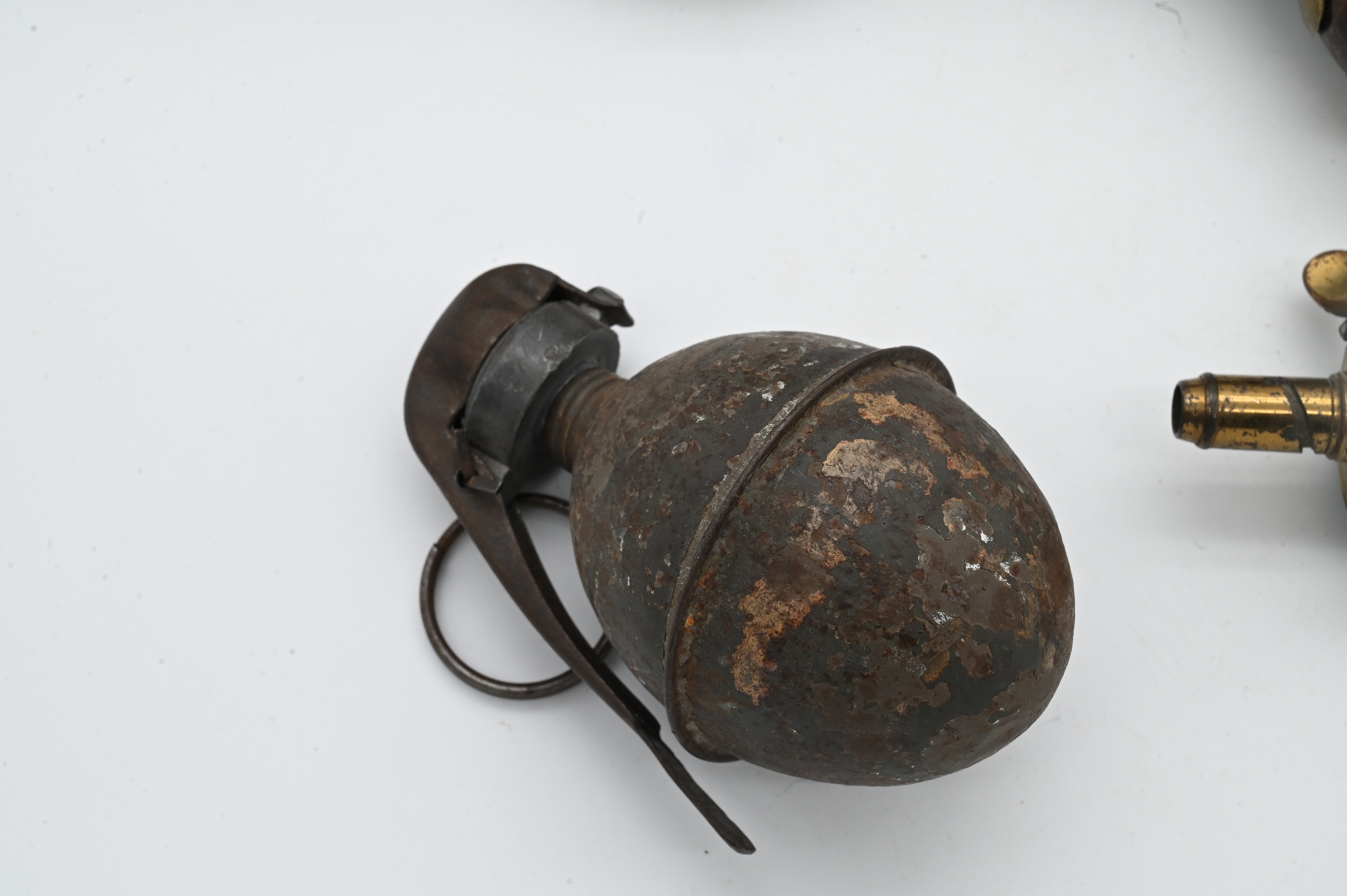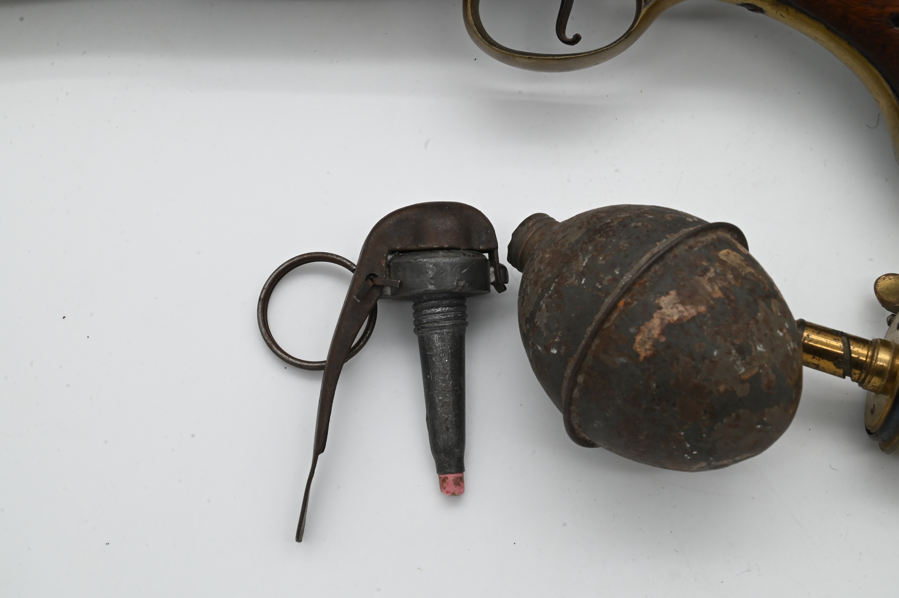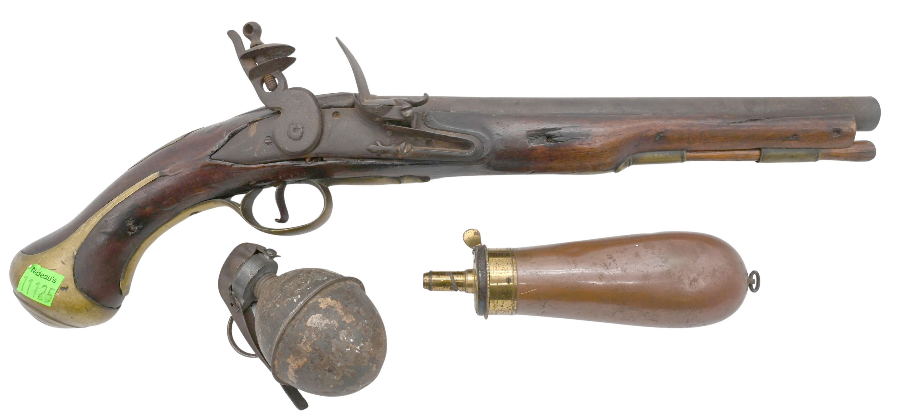 to include flintlock pistol, powder horn , and emptied hand grenade