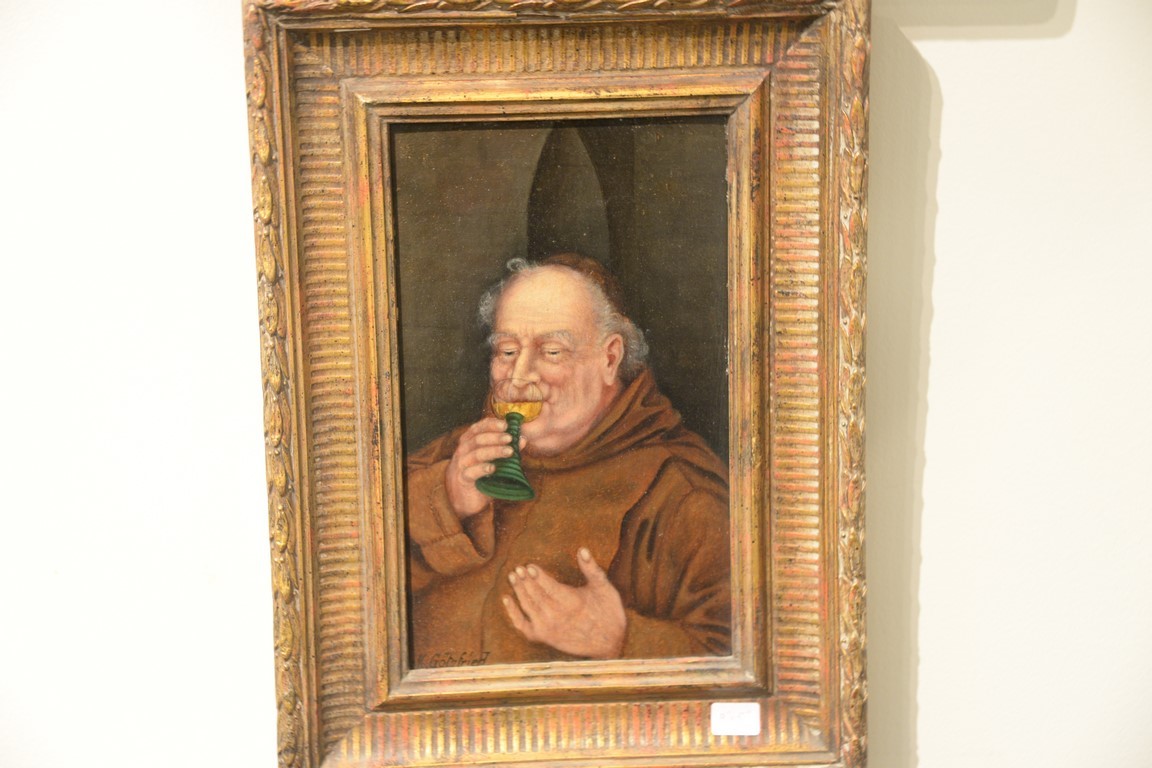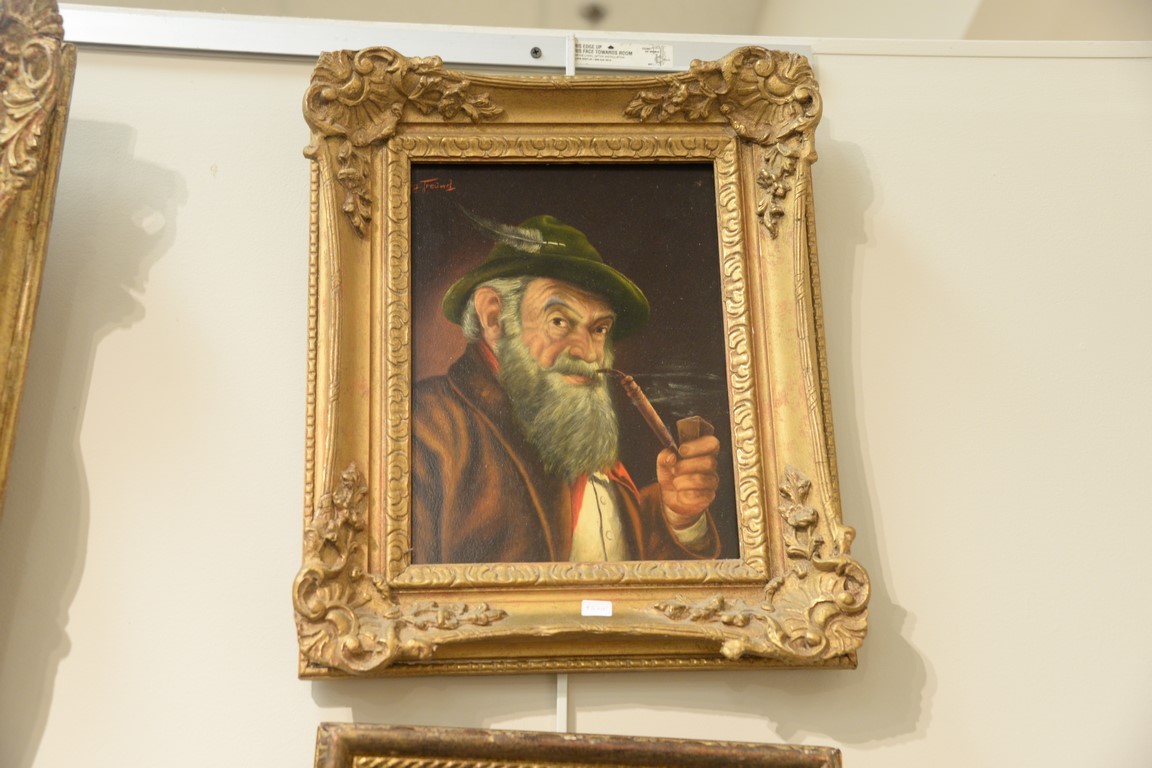 Lot 371: Three portrait paintings to include M. Gotzfried 19th century, oil on board, Man Drinking, signed lower left and two Von Freund, oil…