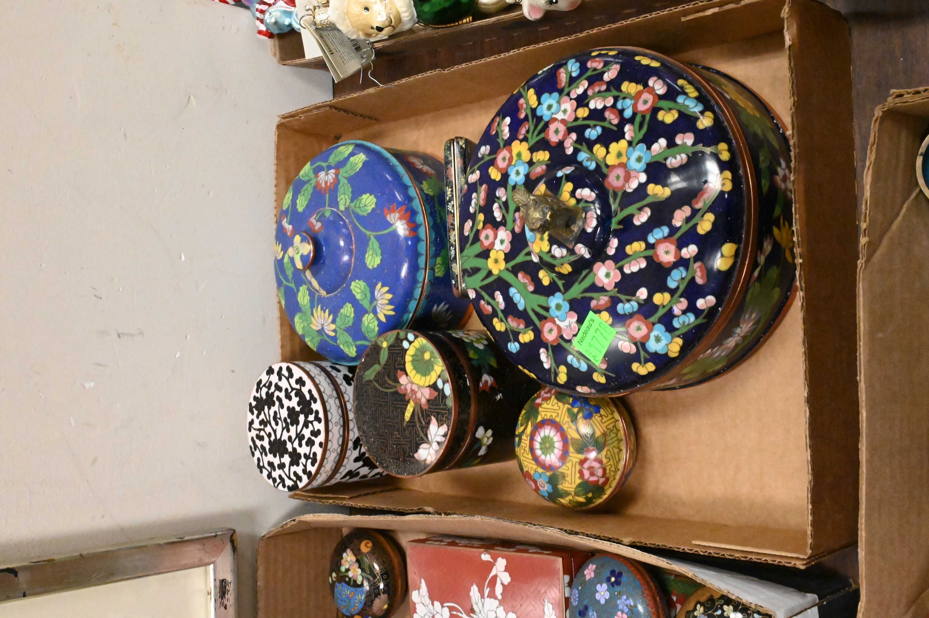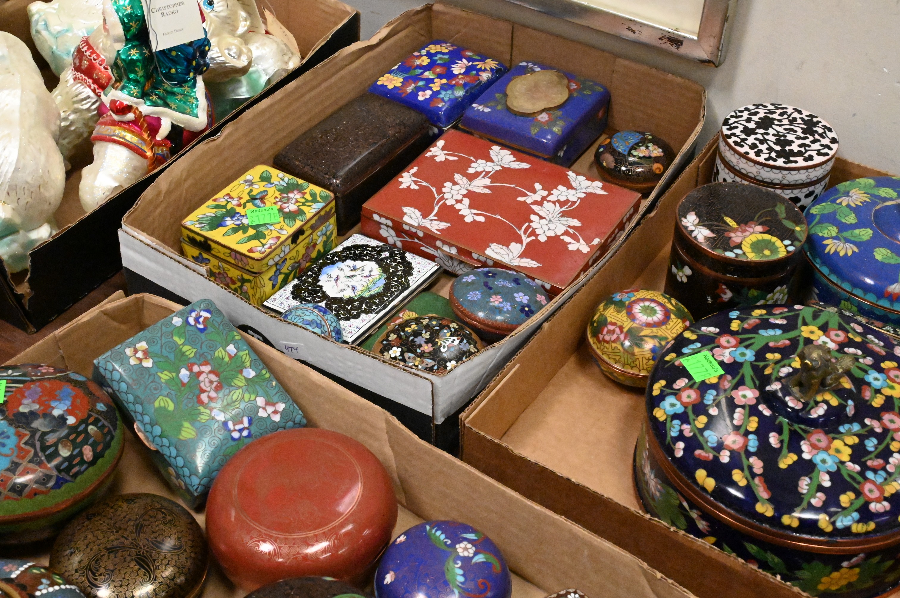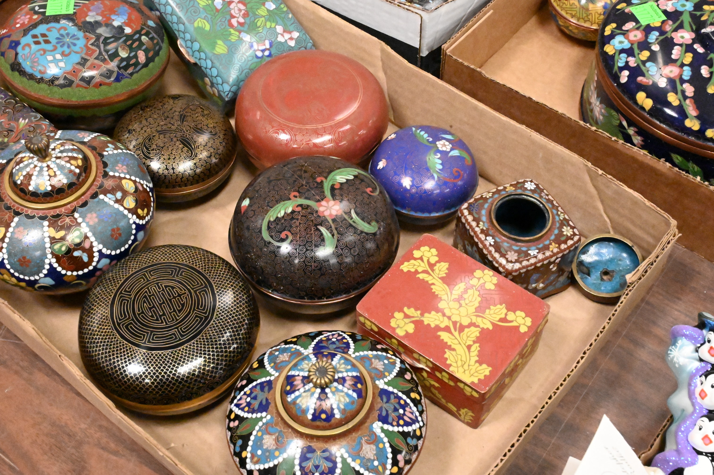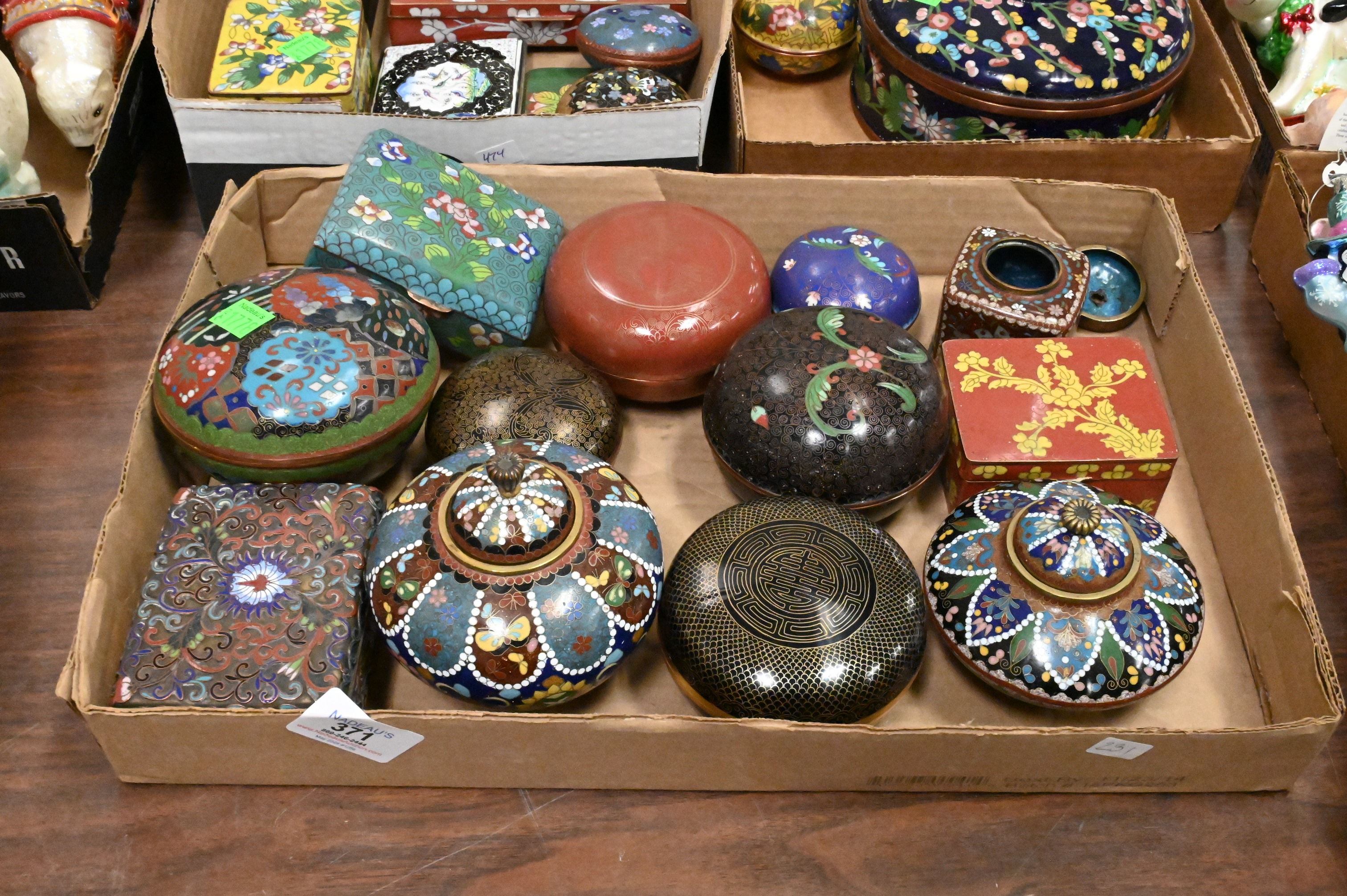 Lot 371: Three Tray Lots of Cloisonne Boxes and Containers