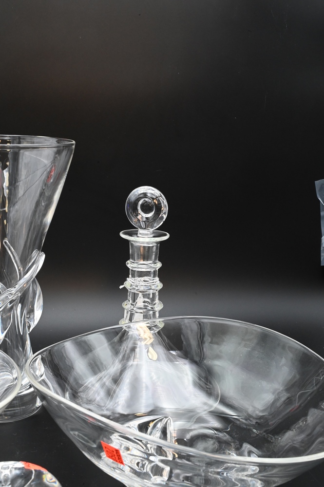 Five Piece Steuben Group, to include two large bowls, a vase, decanter and an apple, tallest 12 inches.
