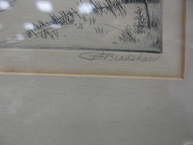 George A. Bradshaw 1880-1968 etching Down to the Bridge, signed lower right, G.A. Bradshaw