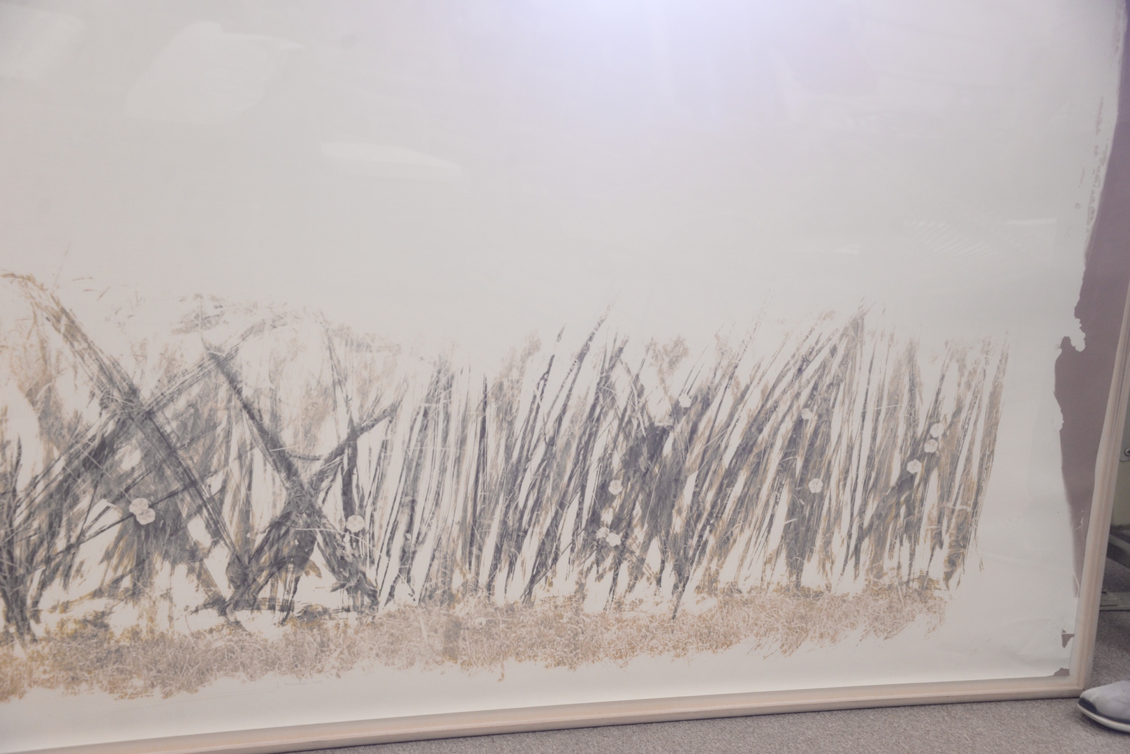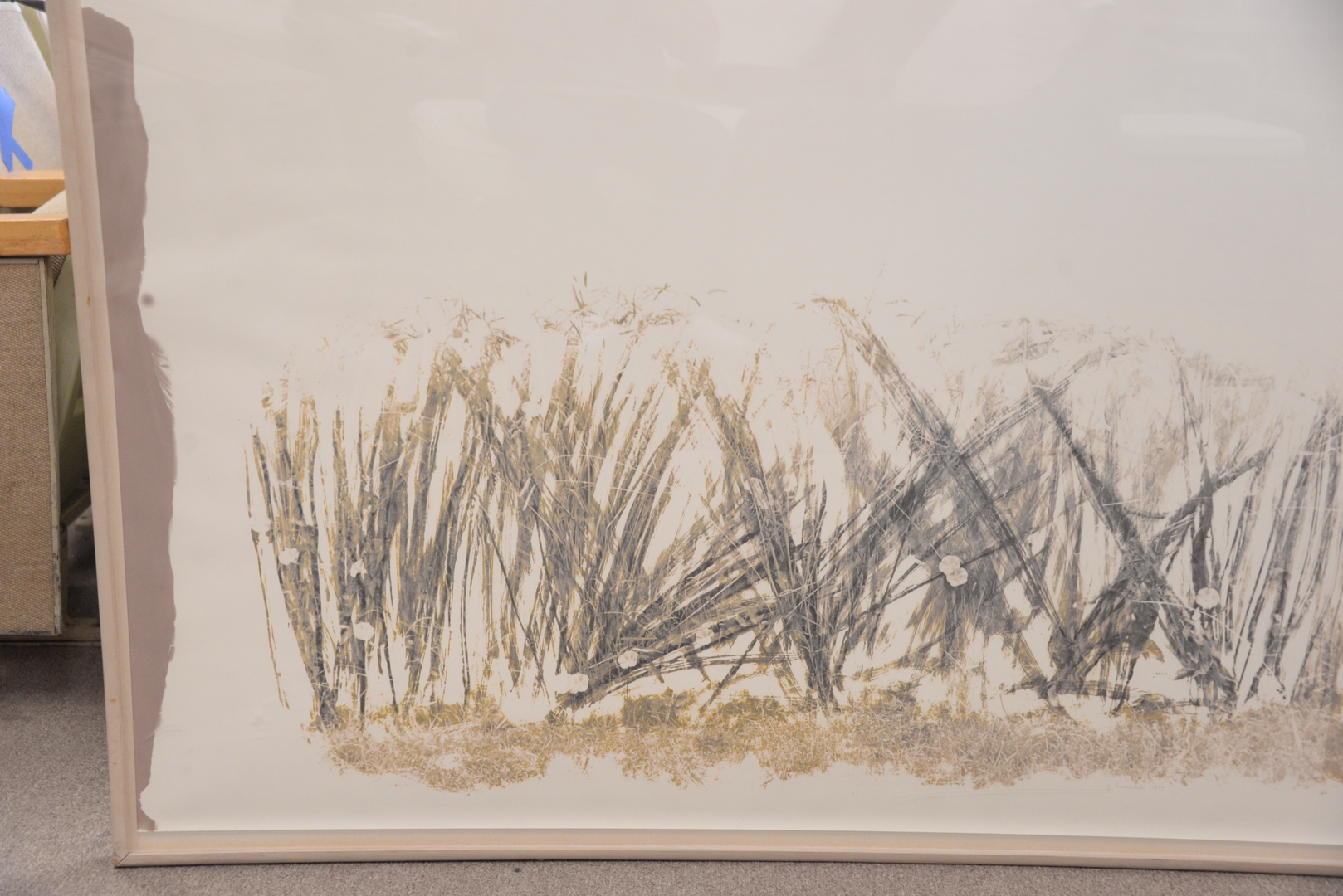 Lot 372: Gerald Incandela (American, b. 1952), Oatfield and Morning-Glory, 1979, photographic painting, signed and dated lower center “G. Incandela, 1979″, 40″ x 86 1/2”.