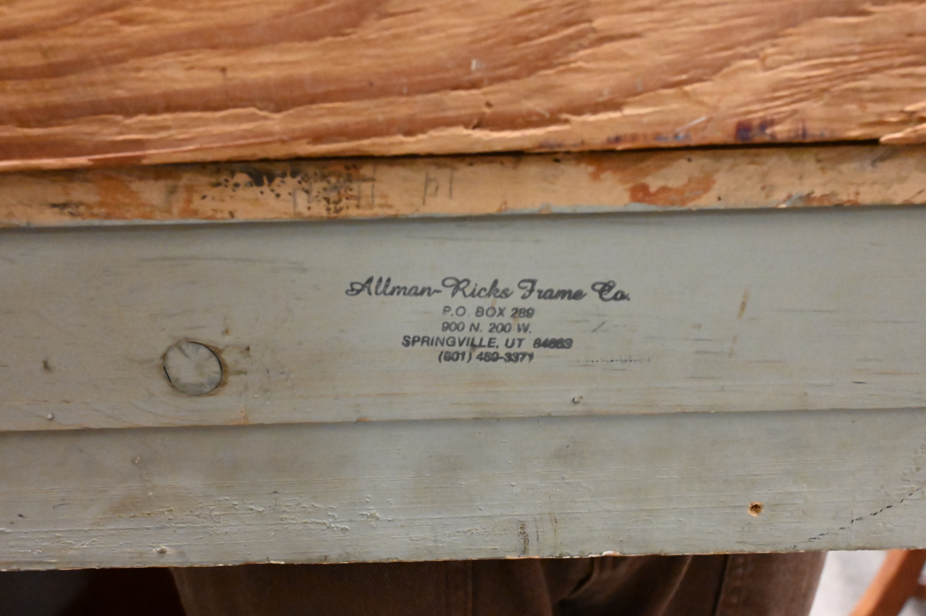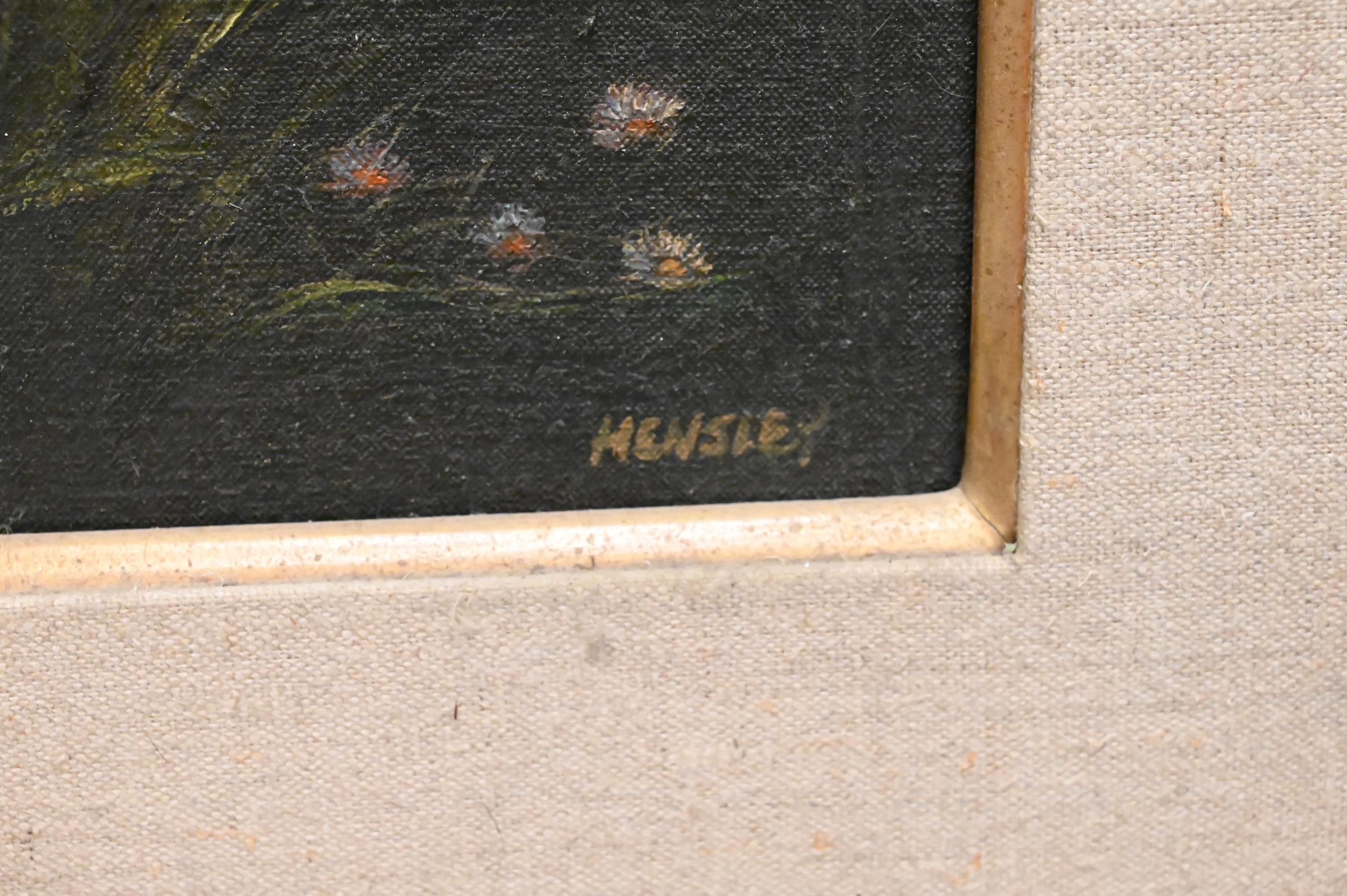 Jackson Hensley (American b. 1940) “Earth Forms” oil on board signed lower right “Hensley” having original price tag of $3,350 on verso 16″ x 14″