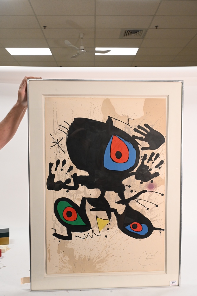 Lot 372: Joan Miro (1893 – 1983), Homage to Miro, 1974, abstract color lithograph, numbered in pencil lower left 15/150, signed in pencil low…
