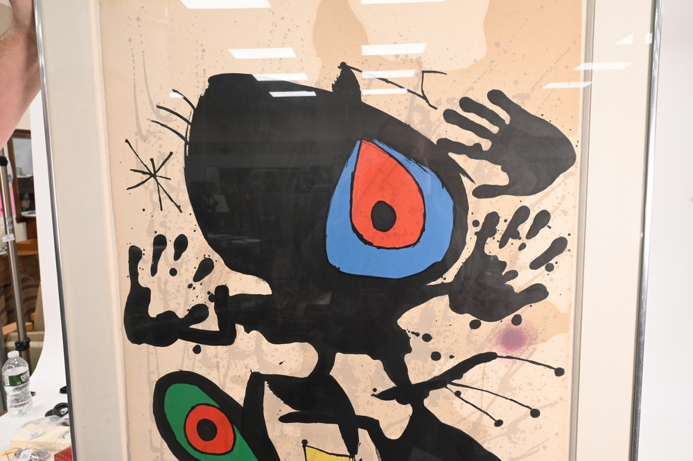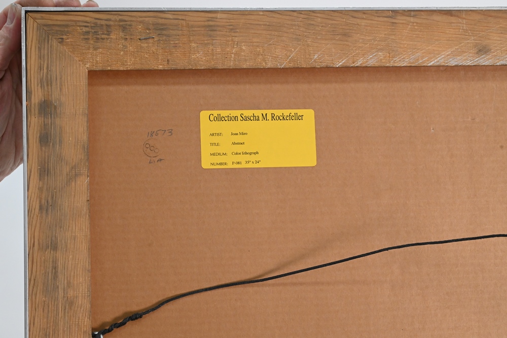 Joan Miro (1893 – 1983), Homage to Miro, 1974, abstract color lithograph, numbered in pencil lower left 15/150, signed in pencil lower right “Miro”, 35″ x 24″. Provenance: From The Museum of Modern Art, New York.