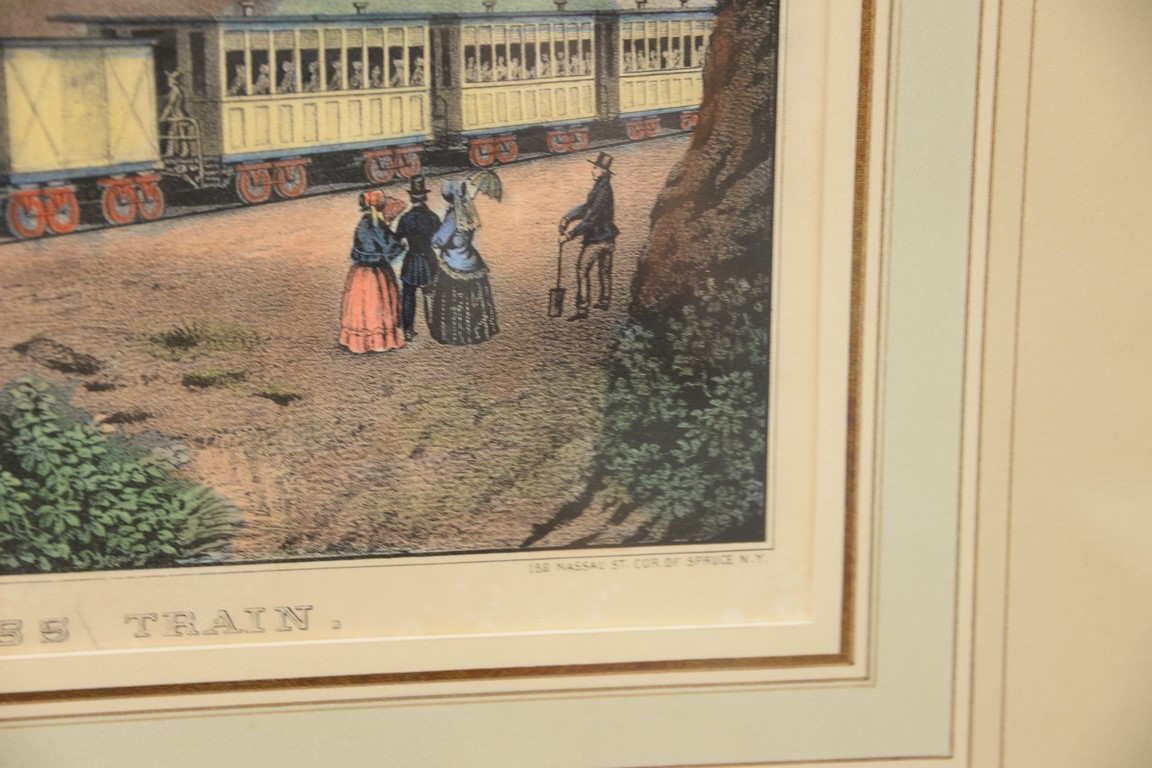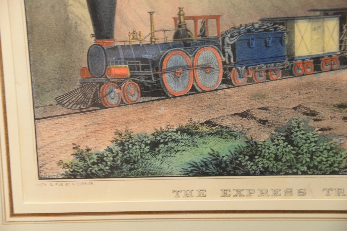 Lot 372: Nathaniel Currier, small folio hand colored lithograph, The Express Train, Lith & Pub by N. Currier, J. Schutz delineator, sight siz…