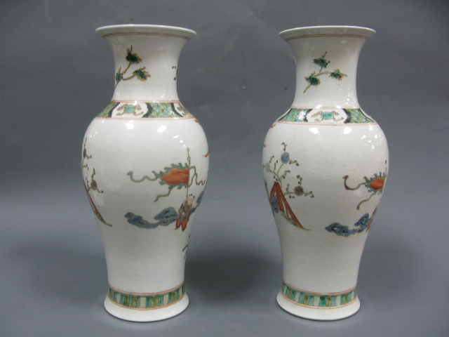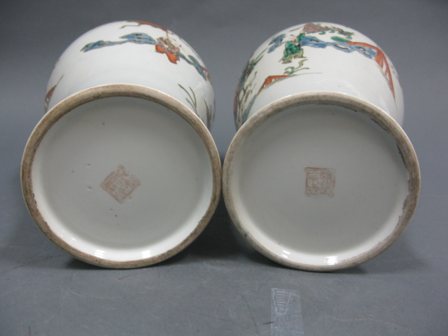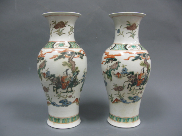 Lot 372: Pair of Oriental warrior porcelain vases, both