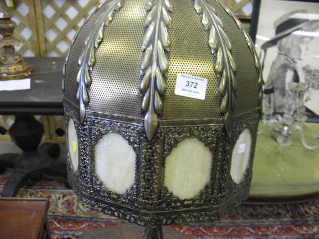 Victorian marble top table crack along with oval Victorian mirror and 2 fishing rods.