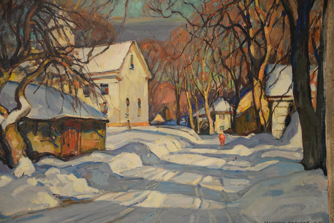 William Lester Stevens 1888-1969 Town Streets After Snowfall oil on canvas signed: W. Lester Stevens N.A. 25 x 30