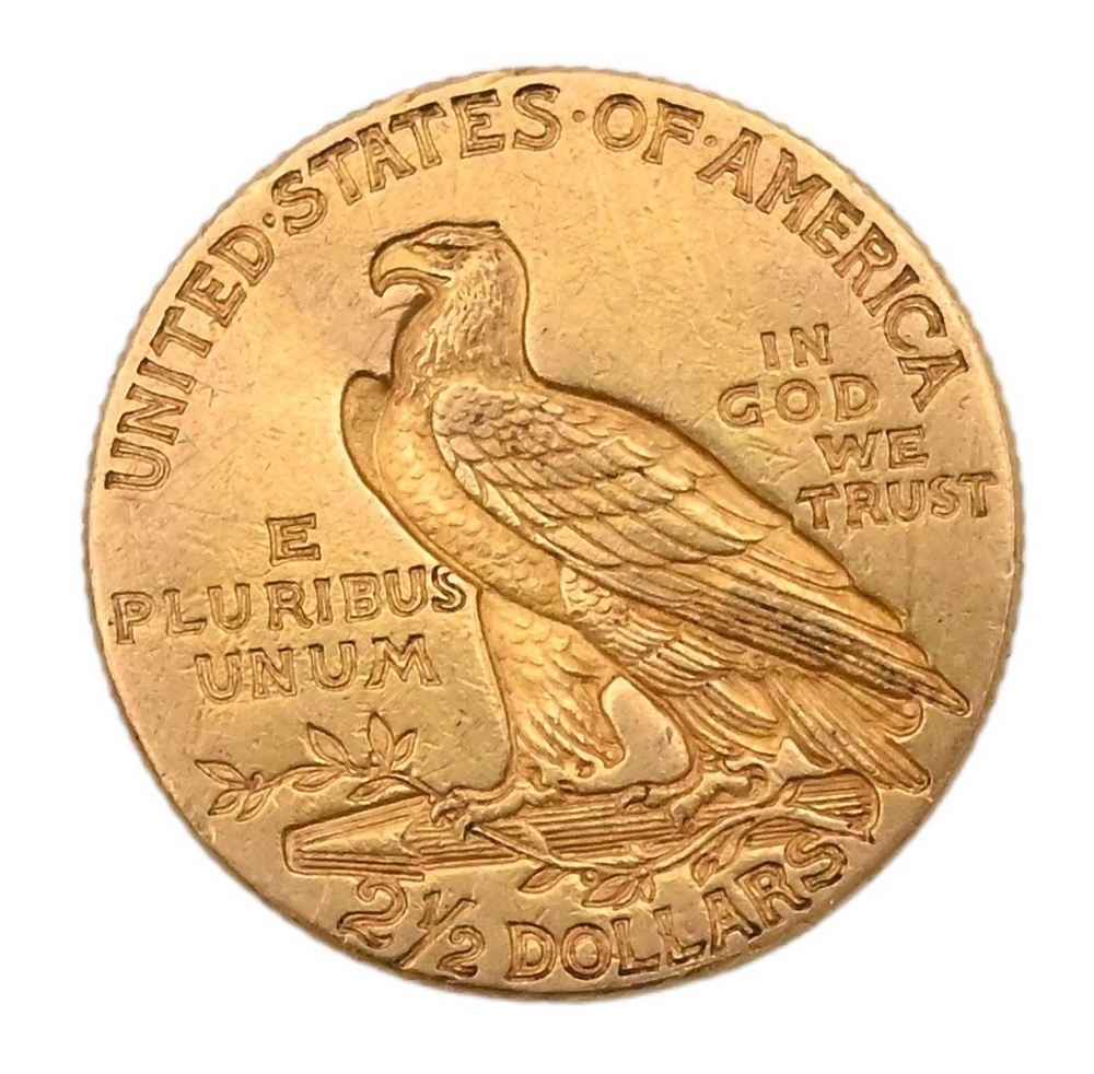 1912 Gold Indian 2 1/2 Dollar Gold, having small bend.