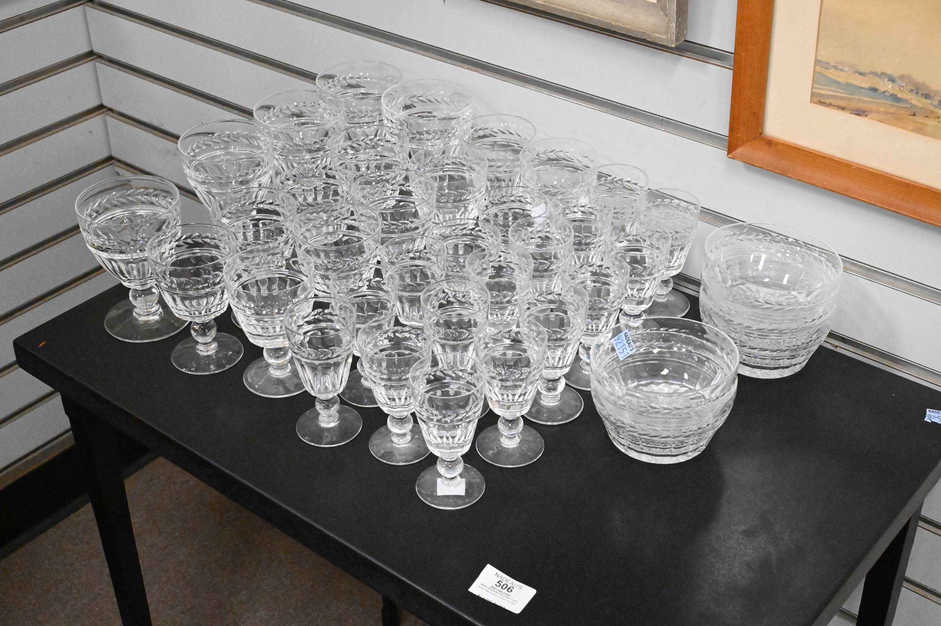 11 water goblets,16 wines, 21 sherry glasses, 8 low sherberts, 5 bowls