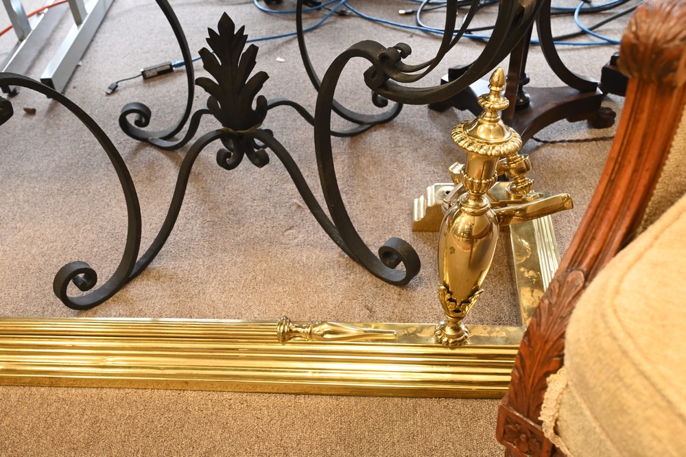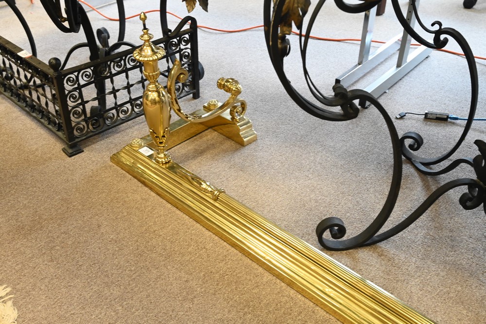 Lot 373: Brass Fire Rail, having urns with scroll supports, 19th century, height 17 1/2 inches, width 54 inches.