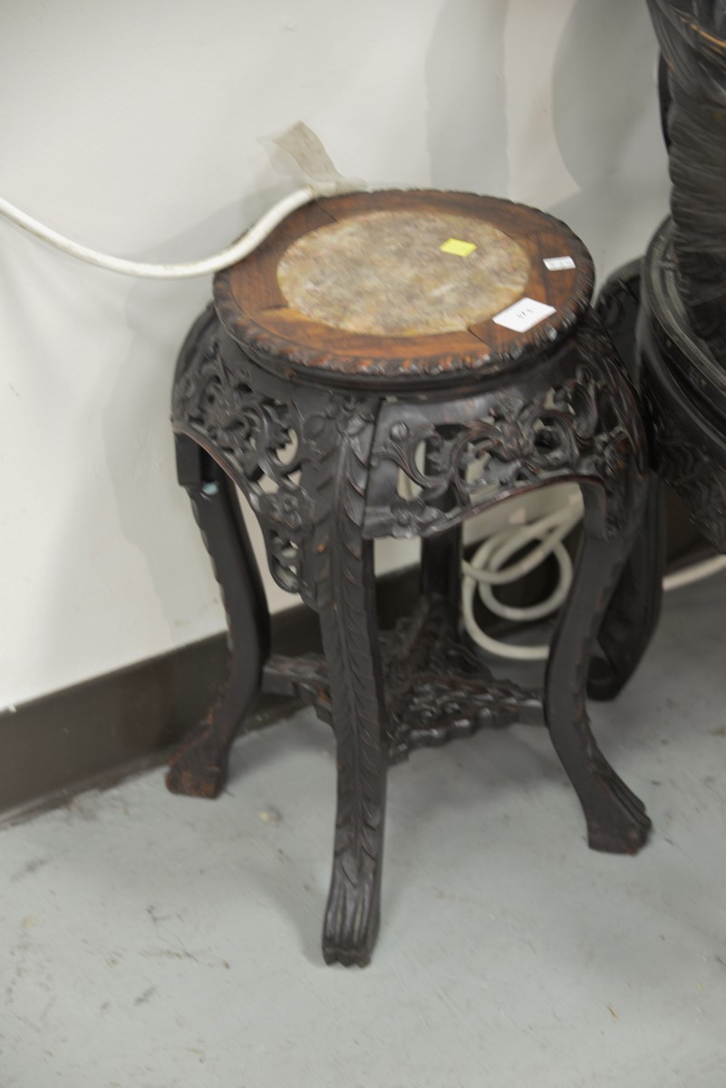 Chinese stand with rouge marble inset. ht. 19 in. dia. 12 in.