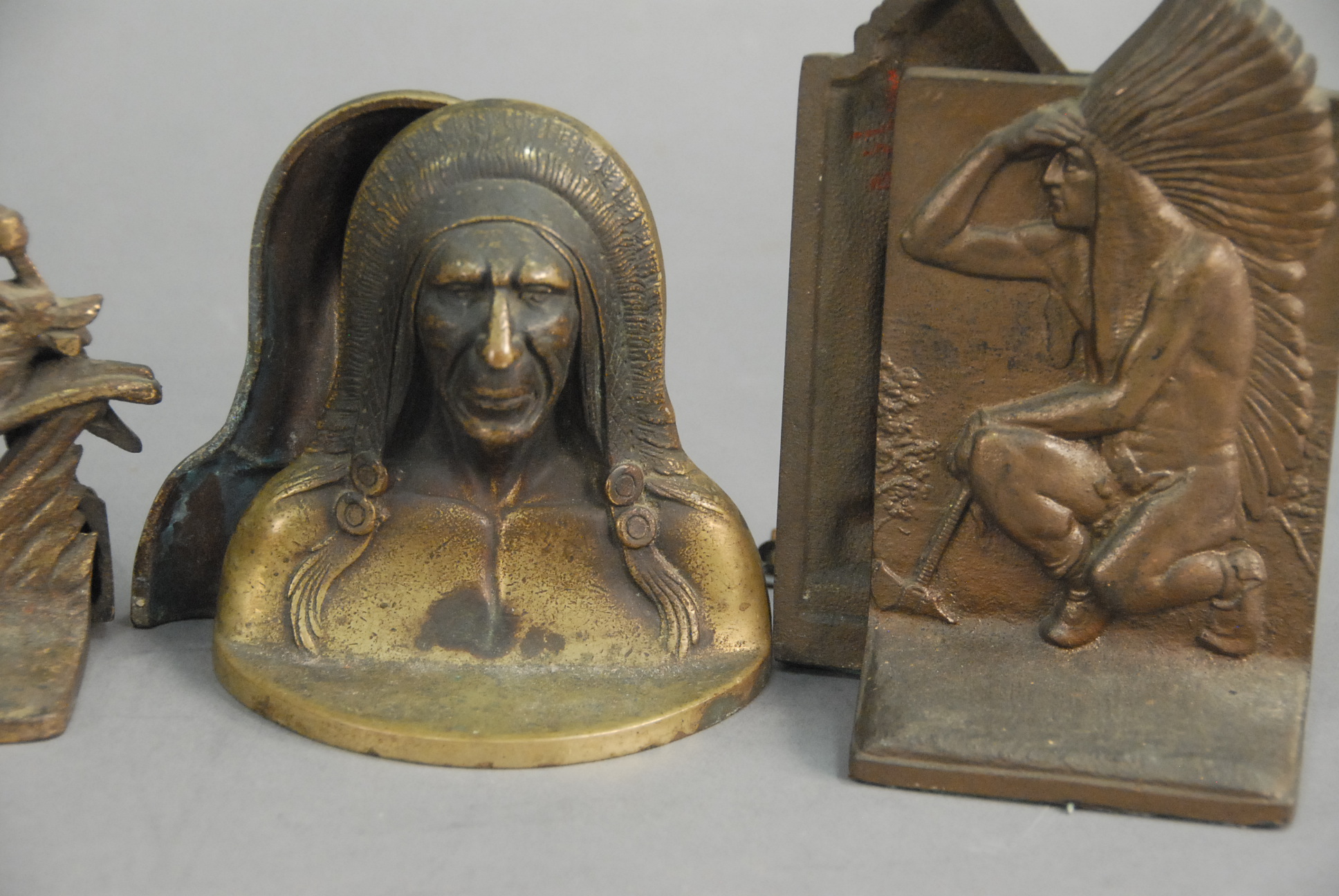 Five pairs of Indian book ends, Bronze and iron along with an iron ship.ht. 6 in. to 7 in.