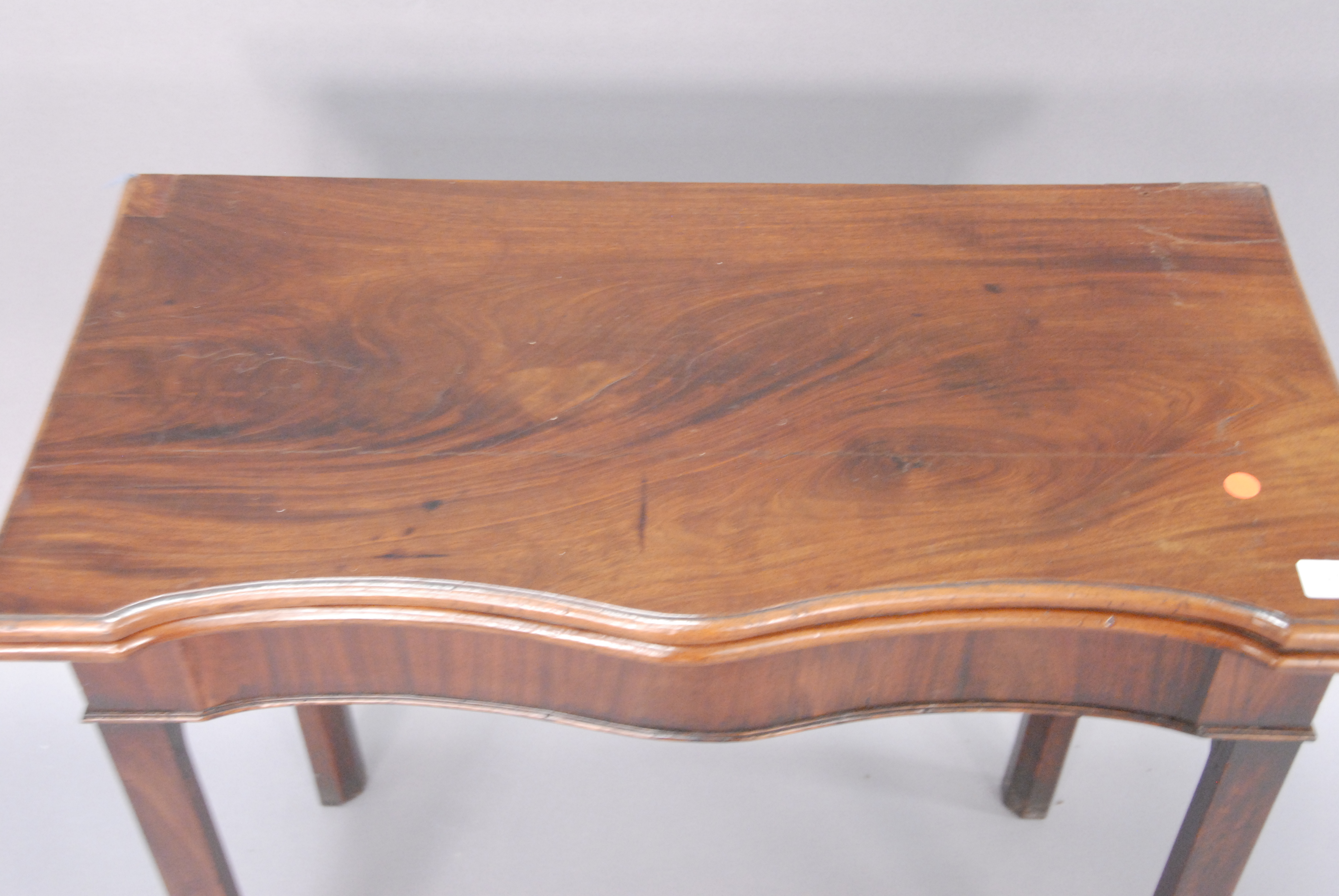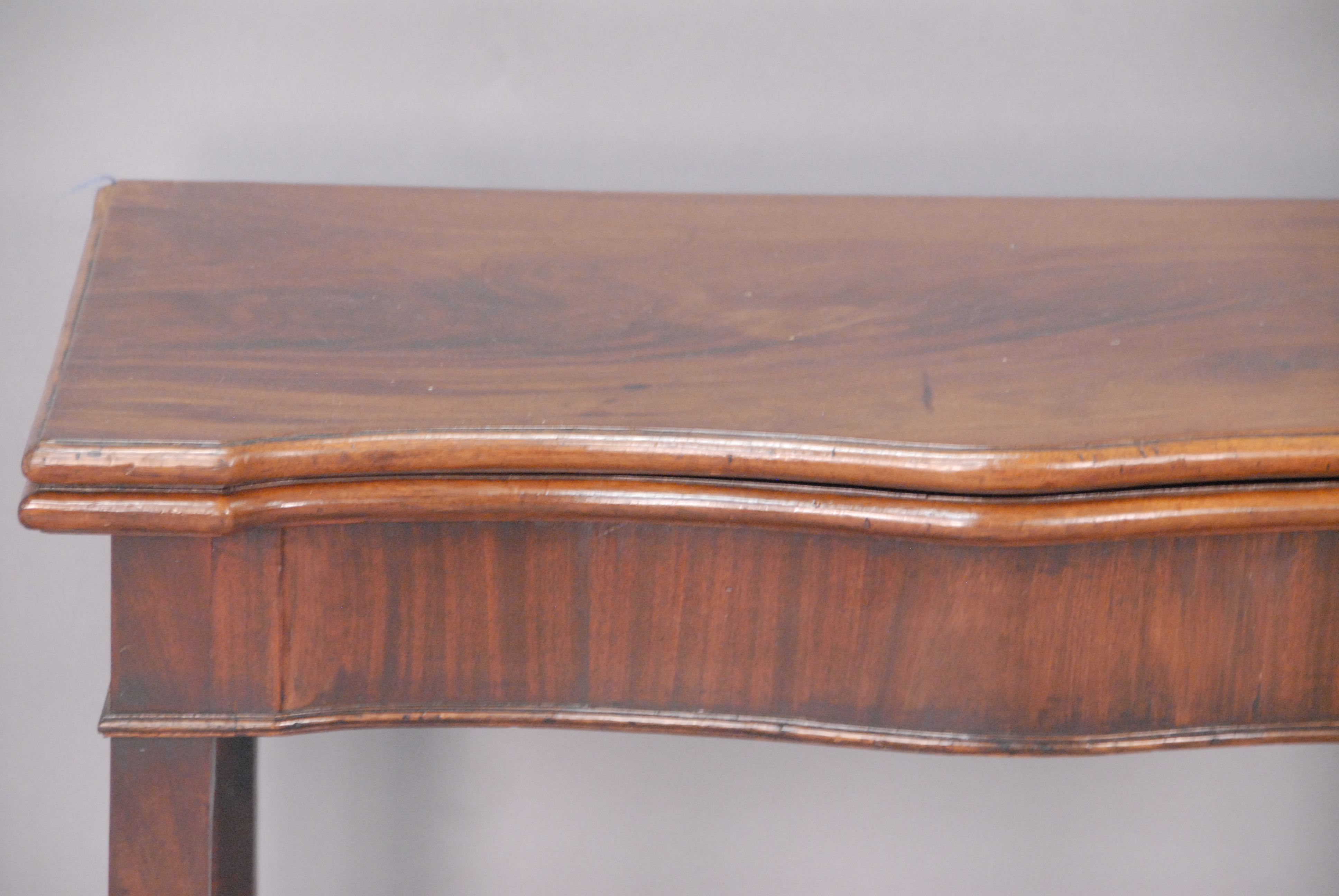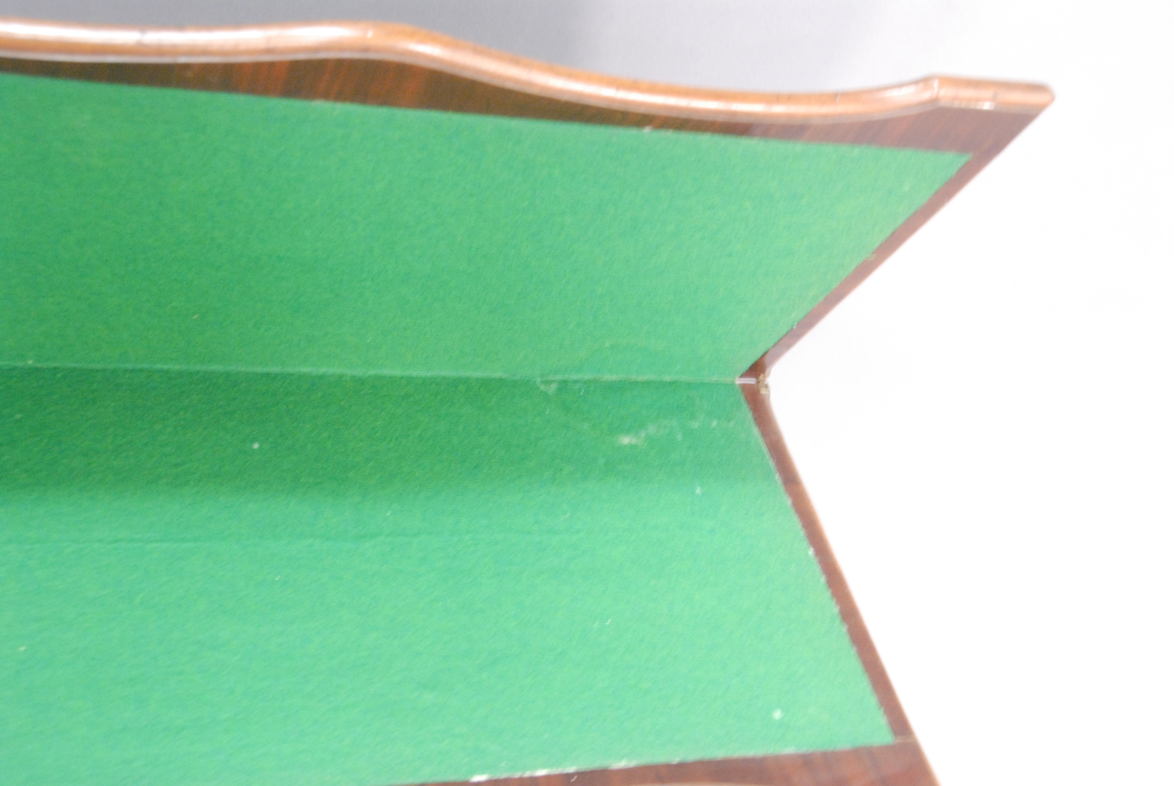 Georgian mahogany game table with shaped top on squared legs with felt interior.