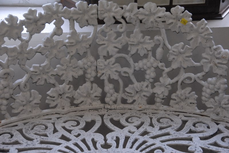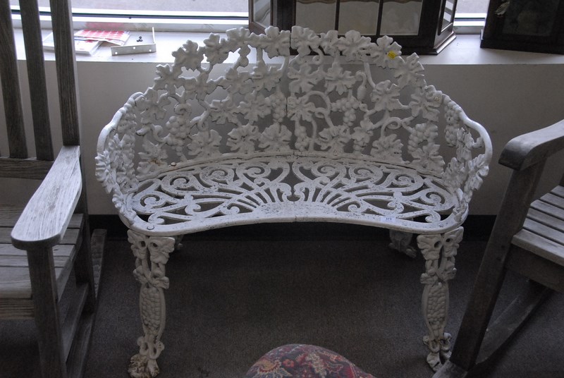 Victorian iron outdoor bench with grape motif. lg. 39in.