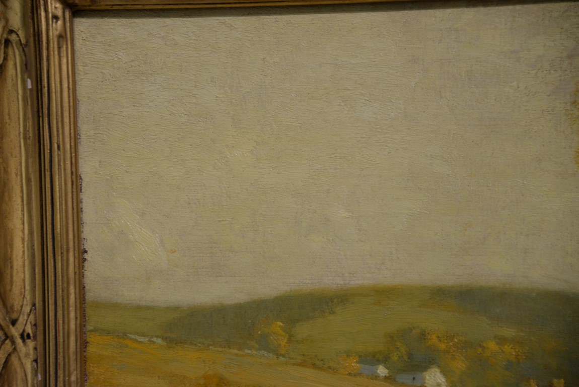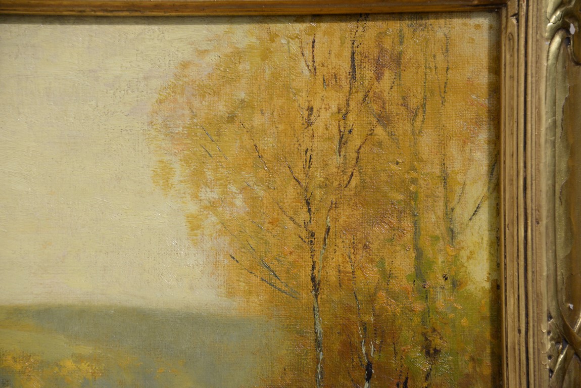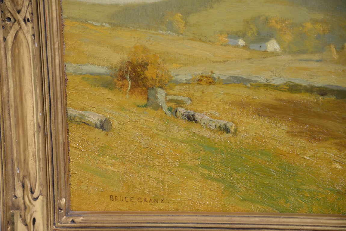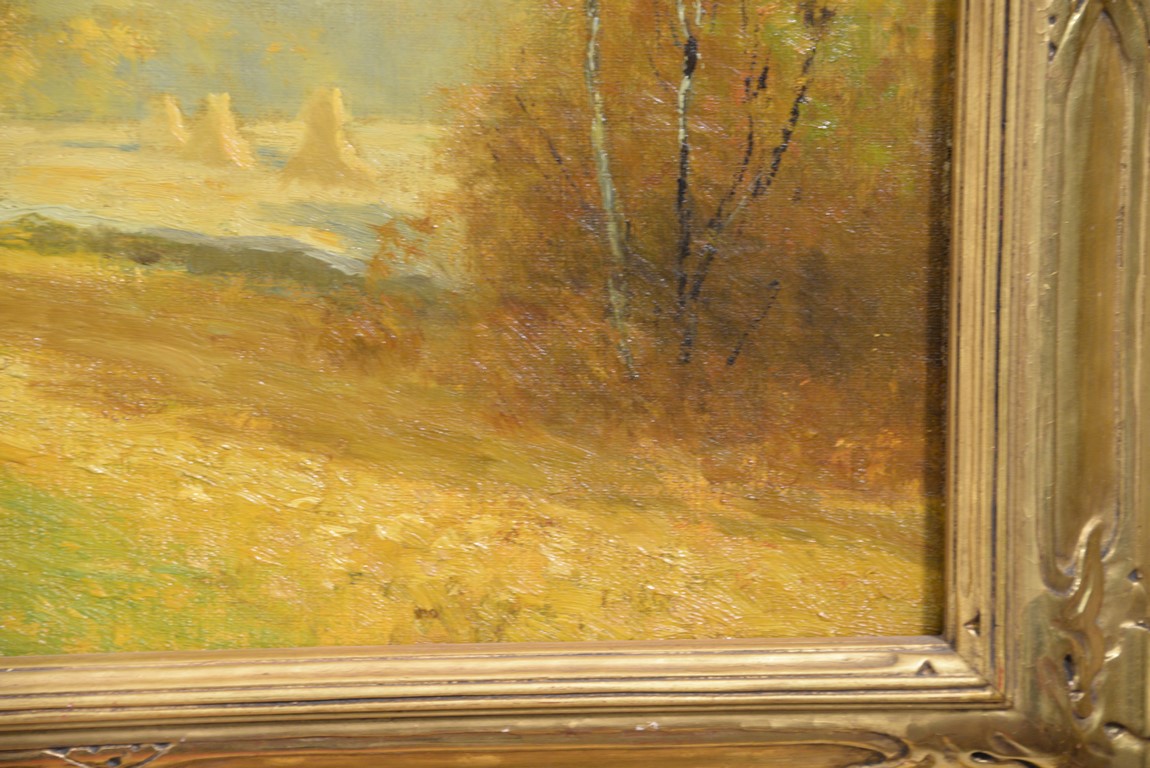 Lot 374: Bruce Crane 1857-1937 Haystacks in the Fall oil on canvas signed lower left: Bruce Crane 16 x 20 edge wear