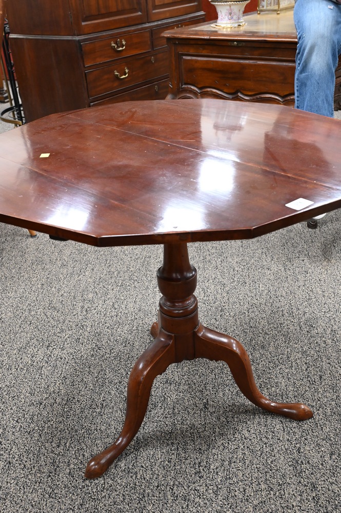 Lot 374: Federal Cherry Tip Table, on base with urn carved shaft, height 28 inches, diameter 31 inches.