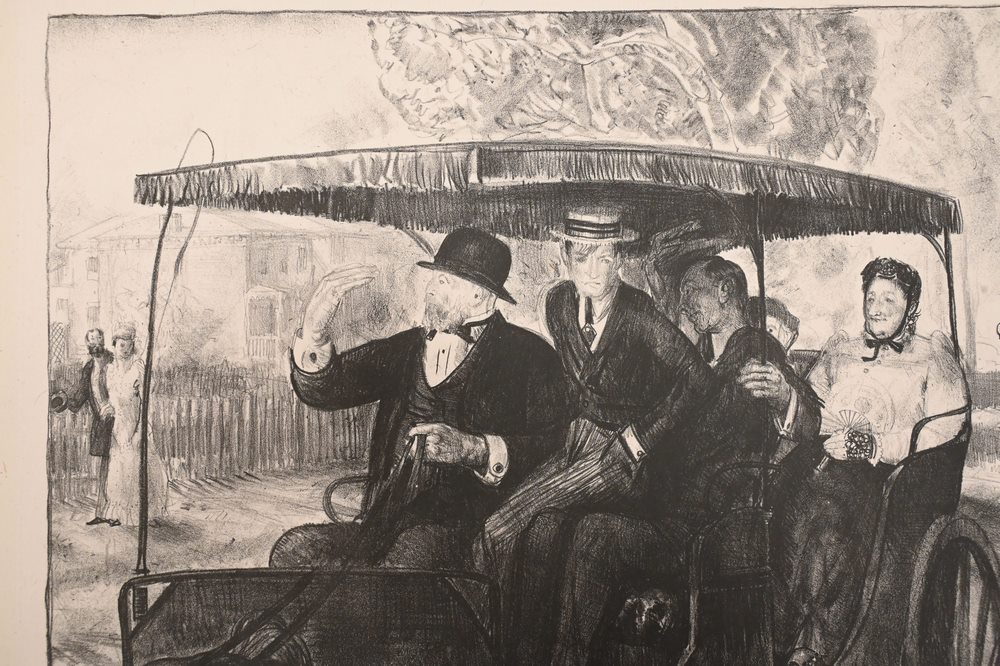 George Bellows (American, 1882 – 1925), Going to the Park, lithograph, edition of 54, signed lower right recto margin Geo Bellows, initialed GB in the plate, Bellows catalog #154, 14″ x 17″.