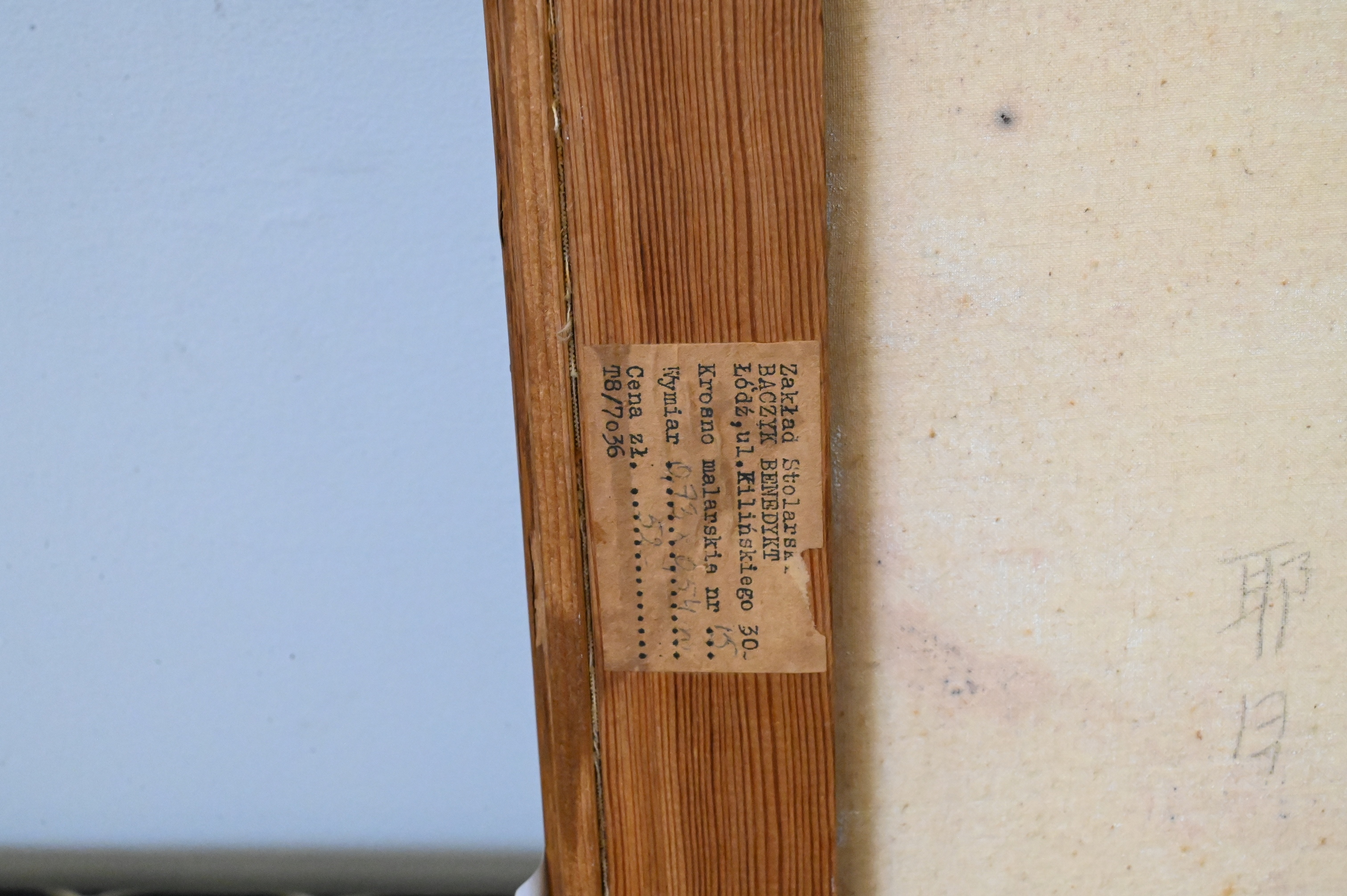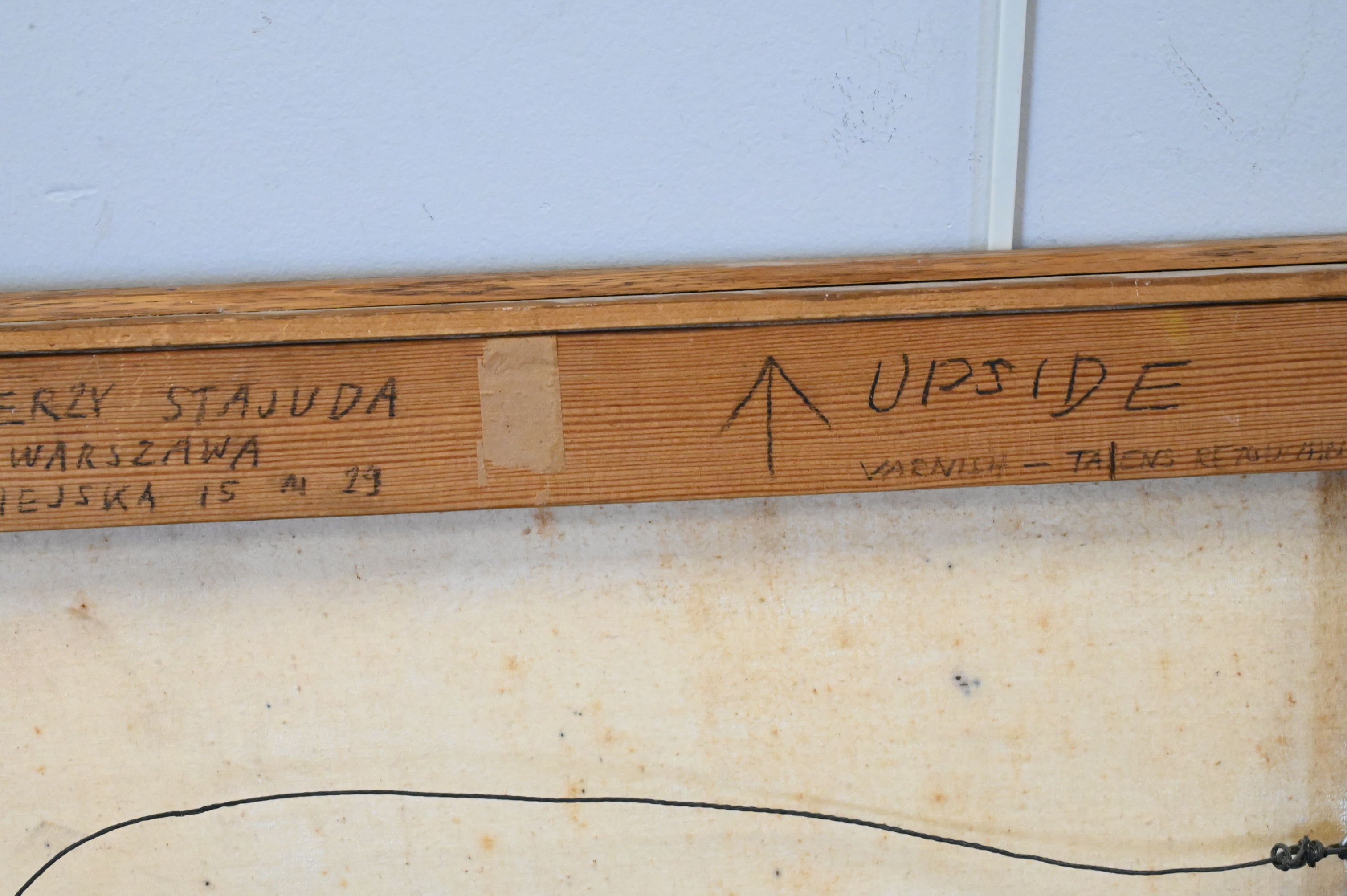 Signed Stajuda ’79 on the reverse. Also bearing Polish framer’s label: Zakład Stolarski Baczyk Benedykt, Łódź, ul. Kilińskiego 30; Krosno malarskie nr 15