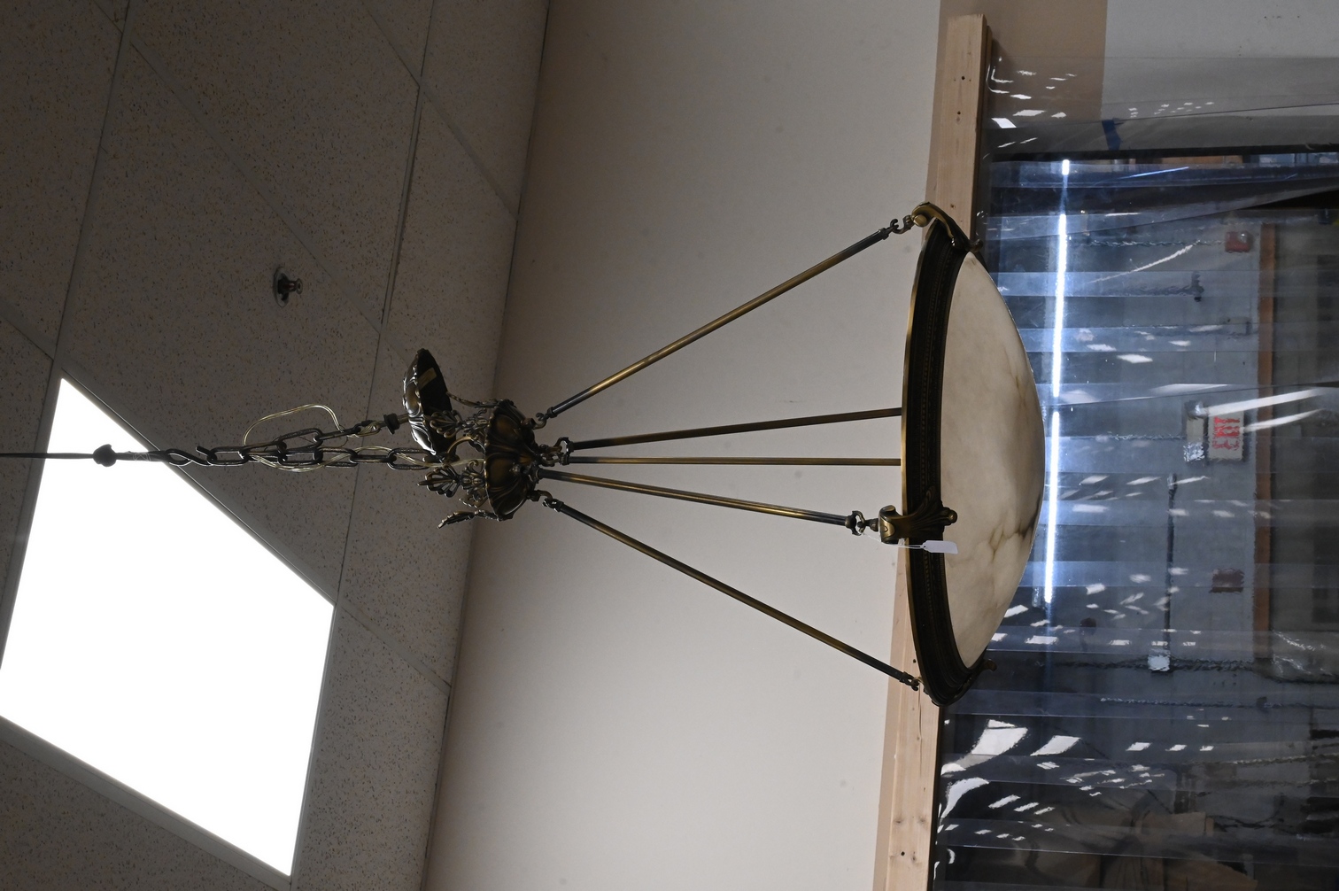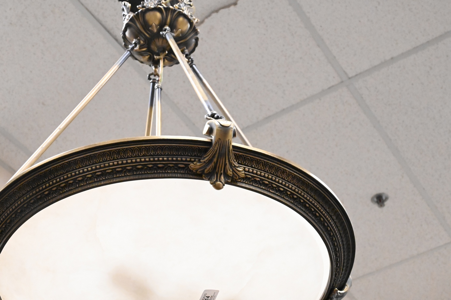Lot 374: Pair of Bronze and Alabaster Drop Chandeliers