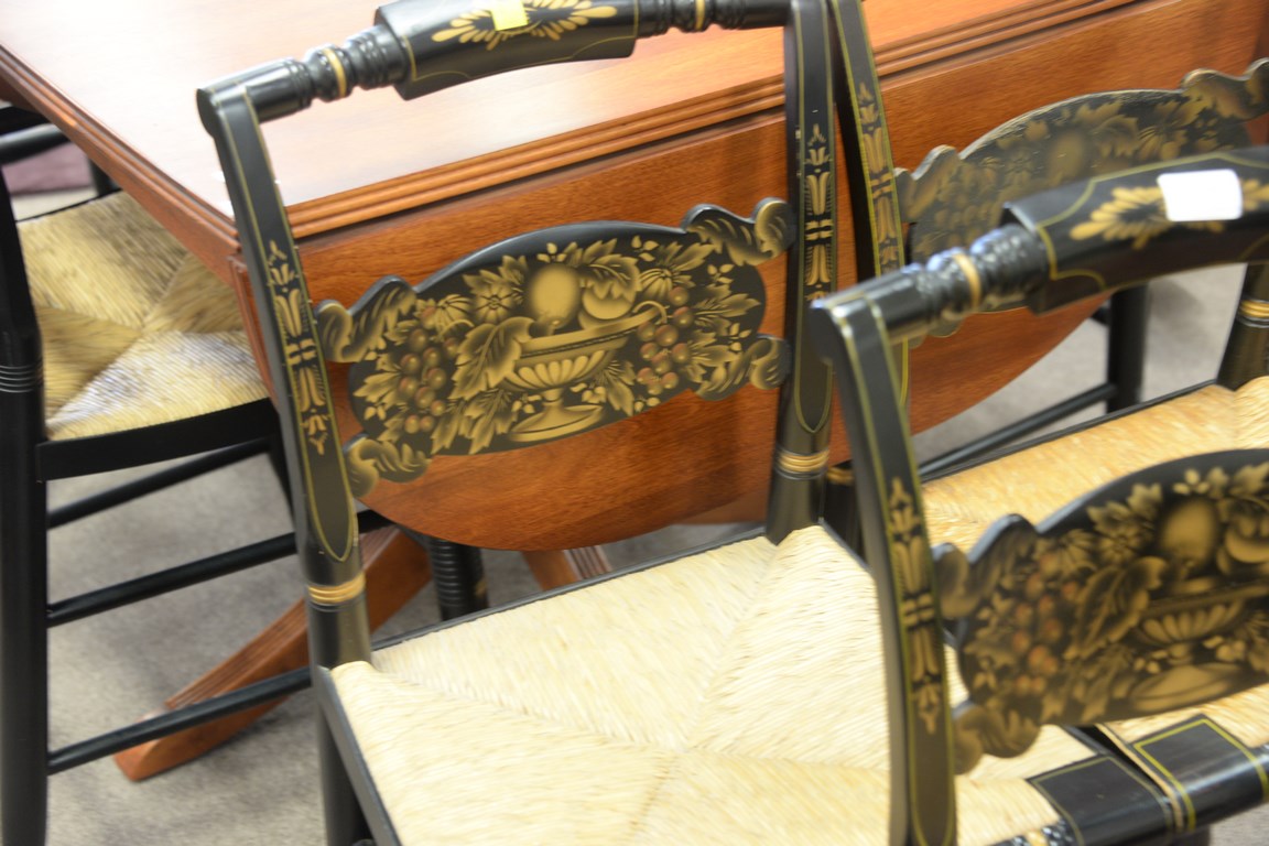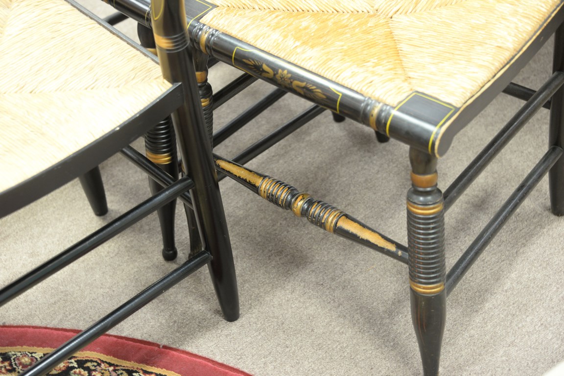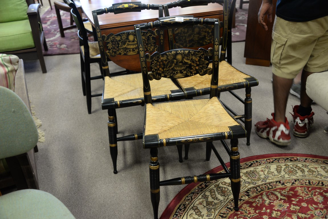 Set of three Hitchcock pillowback side chairs.