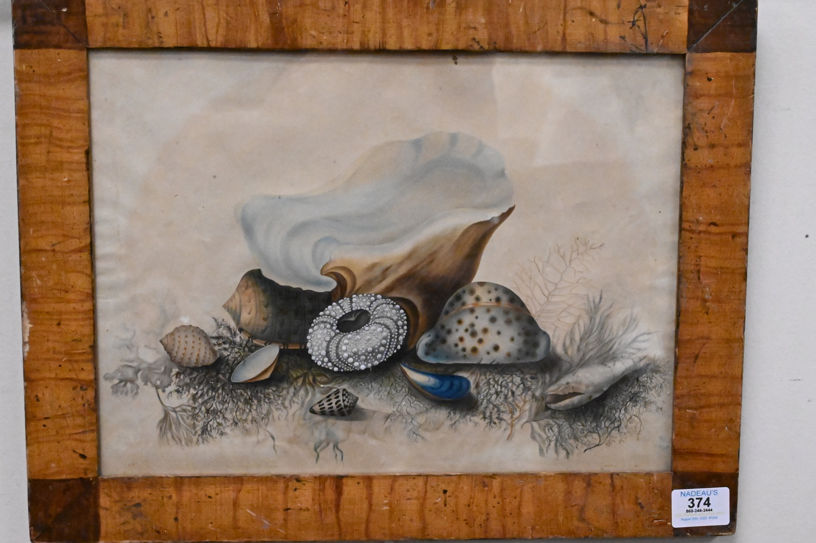 Still Life of Seashells, watercolor, 19th century, 10 1/2″ x 14 1/2″. Provenance: Estate of Peter Tillou, Litchfield, Connecticut.