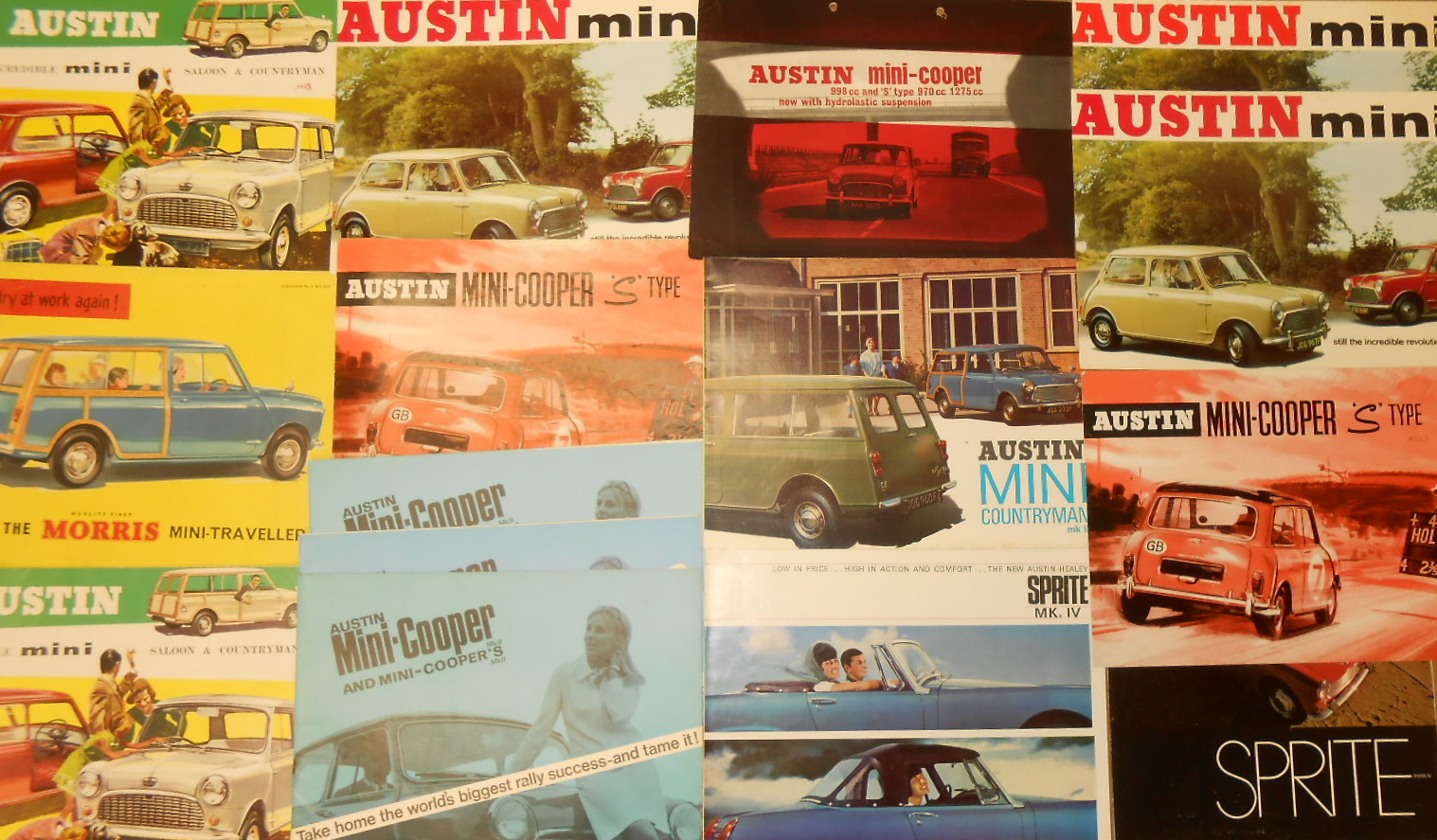 Twenty seven Austin Healey, Sprite, Mini Cooper and Mini brochures