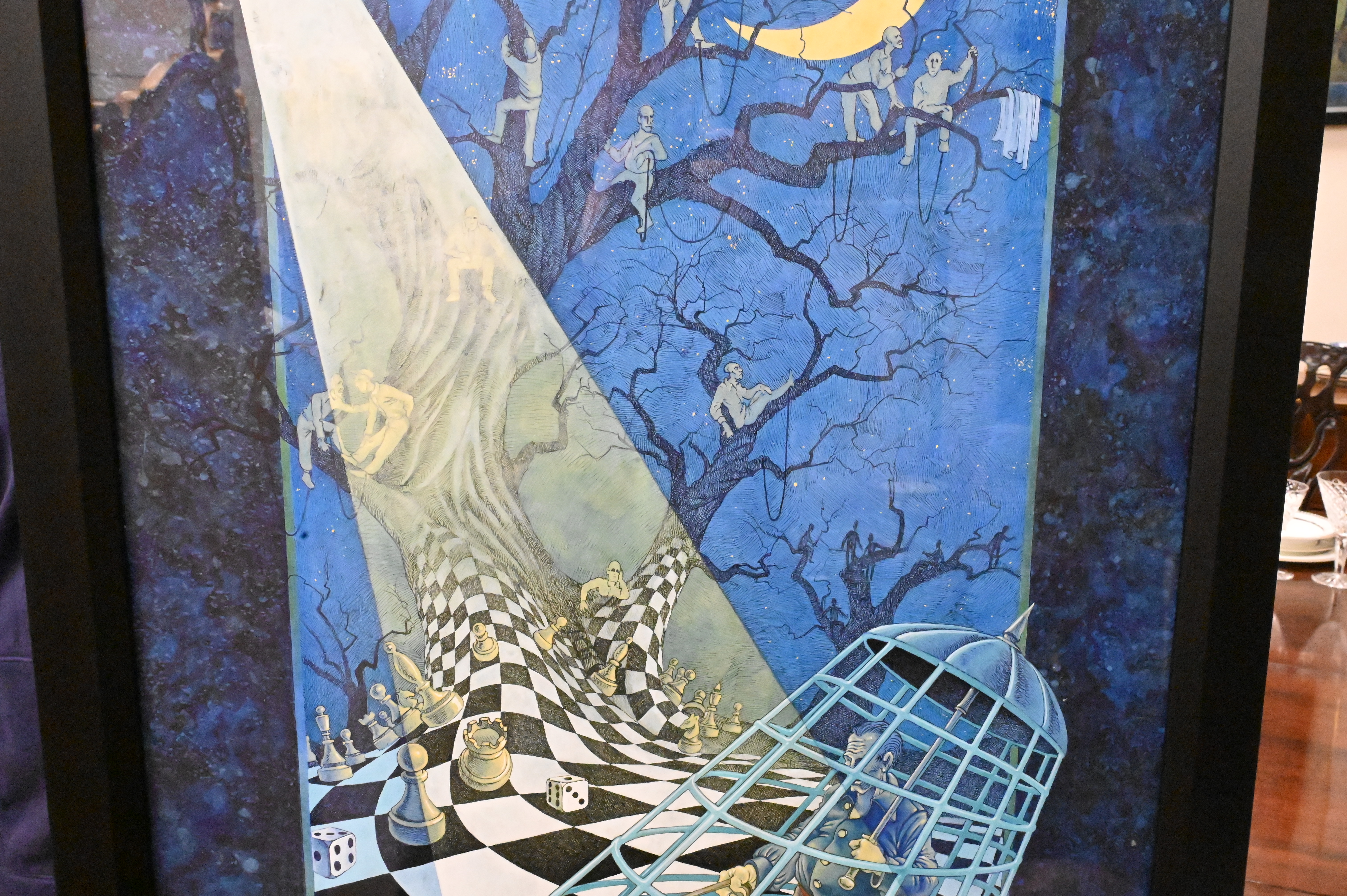 Attributed to Sergey Poyarkov (Ukrainian, b. 1965), mixed media on paper, untitled, unsigned, 35 1/2″ x 23 1/2″. Provenance: Estate of Peter Tillou, Litchfield, Connecticut.