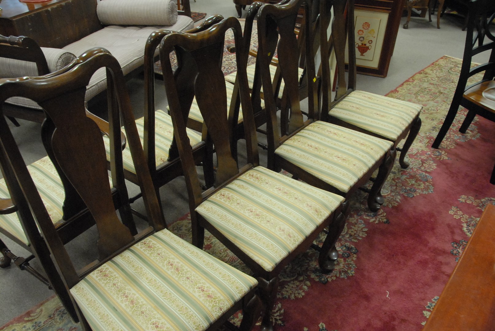 Lot 375: Ethan Allen set of eight Queen Anne style dining chairs.