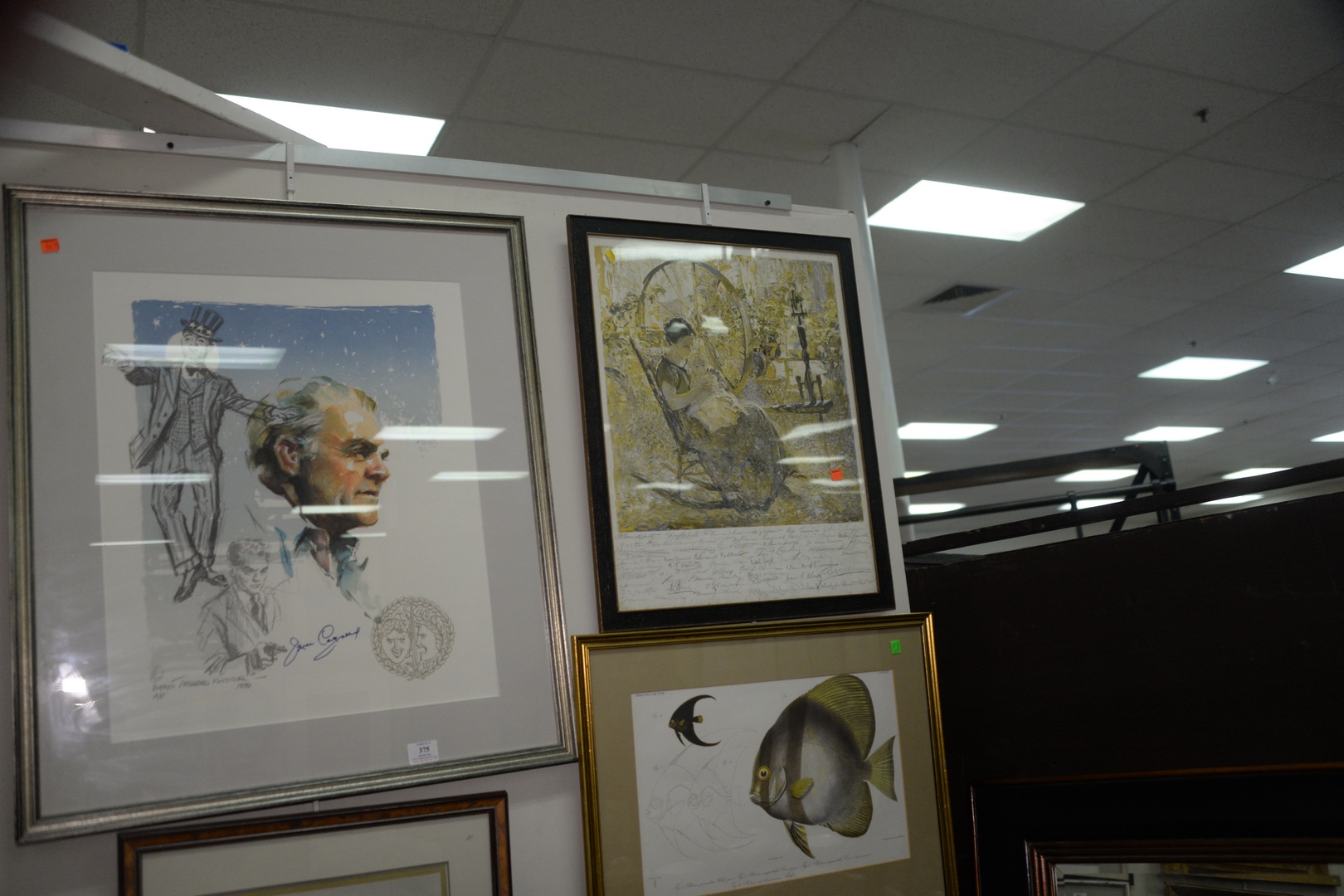 Group of Ten Framed Prints and Lithographs along with a large mirror